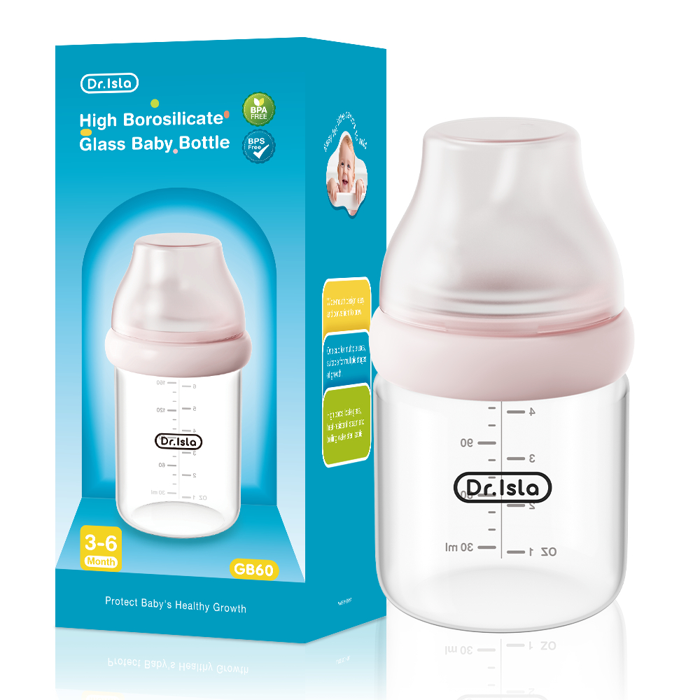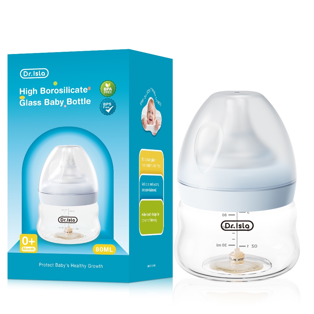 Dr.isla Feeding Bottle For Newborn High Borosilicate Glass BPA-Free Anti-colic 3oz/6oz/8oz GB61