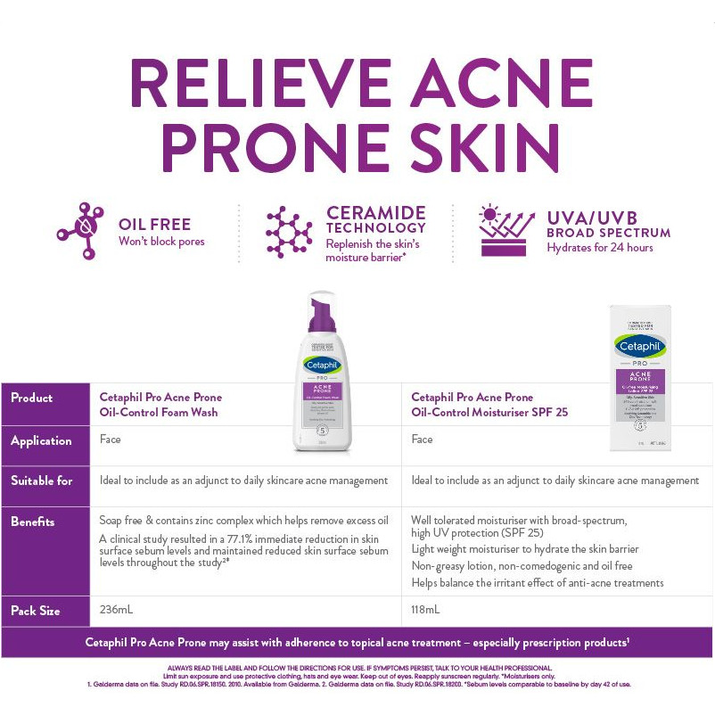 Cetaphil Pro Acne Prone Oil Free Facial Moisturising Lotion SPF 25/Foam Wash