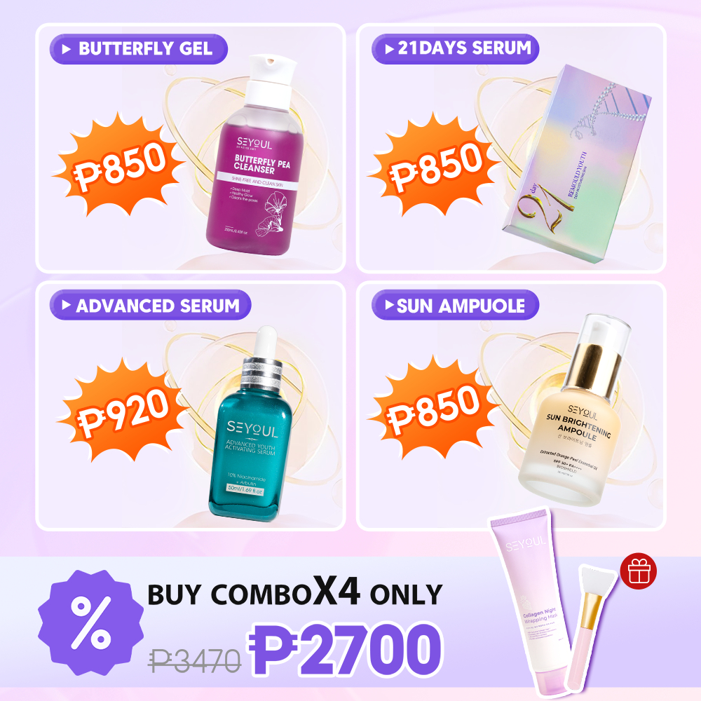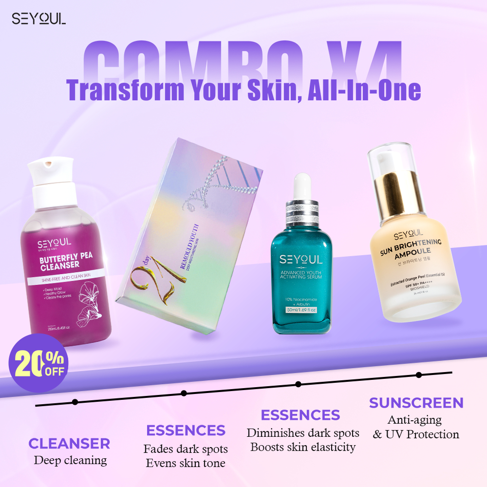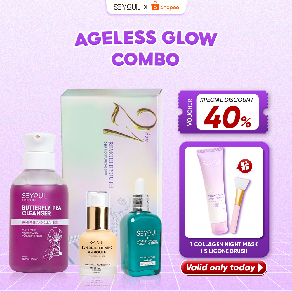 SEYOUL Ageless Glow Combo with Butterfly Cleanser, 21 Days Serum, Advanced Youth Serum, Sun Ampoule