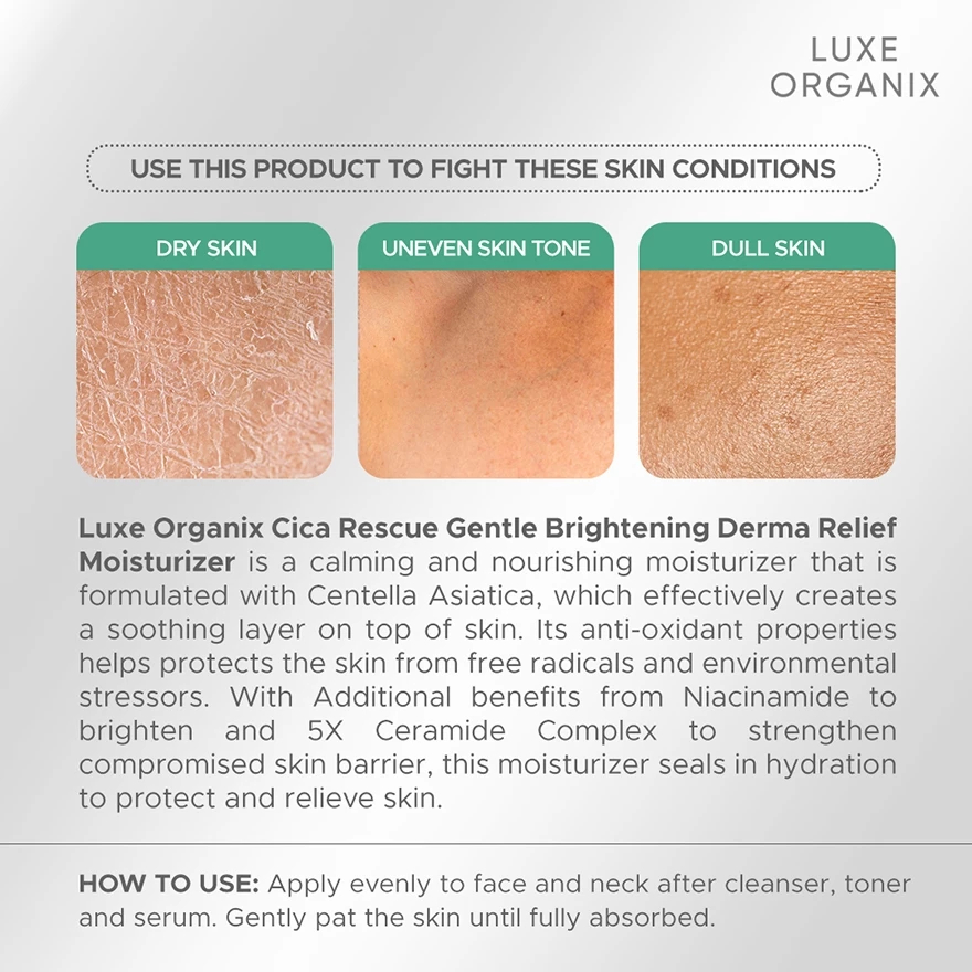 Luxe Organix Cica Rescue Gentle Brightening Derma Relief Moisturizer 50g