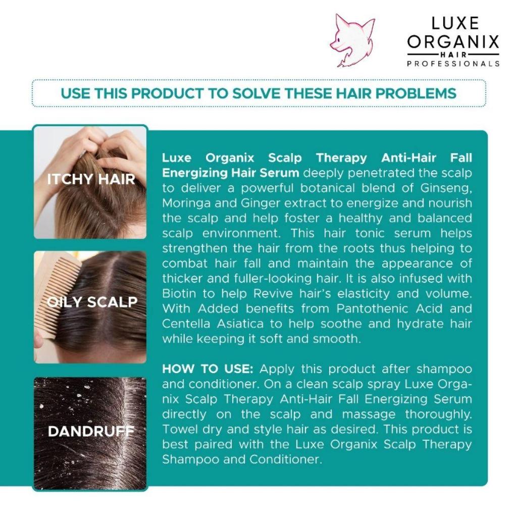 Luxe Organix Scalp Therapy Anti-Hair Fall Energizing Hair Serum 80ml – With Ginseng, Moringa, Ginger