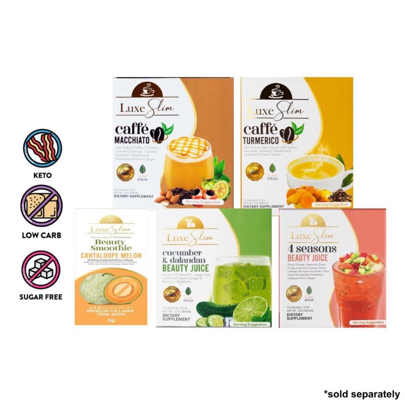 Luxe Slim Beauty Juice by Ana Magkawas/caffe turmerico/cucumber dalandan/four season/macchiato/melon