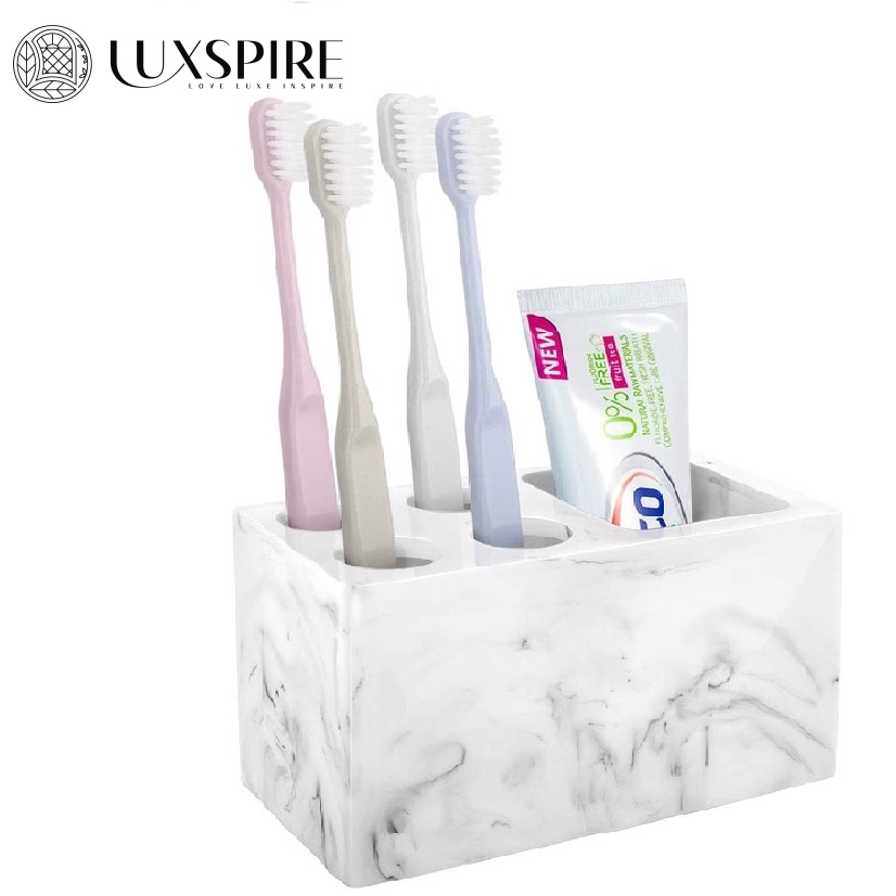 Luxspire Toothbrush Holder, 5 Slots Toothbrushes Razor Holder Toothpaste Stand, Resin Decorative Dental Storage for Bathroom Accessories Set Vanity Counter Sink Organizer