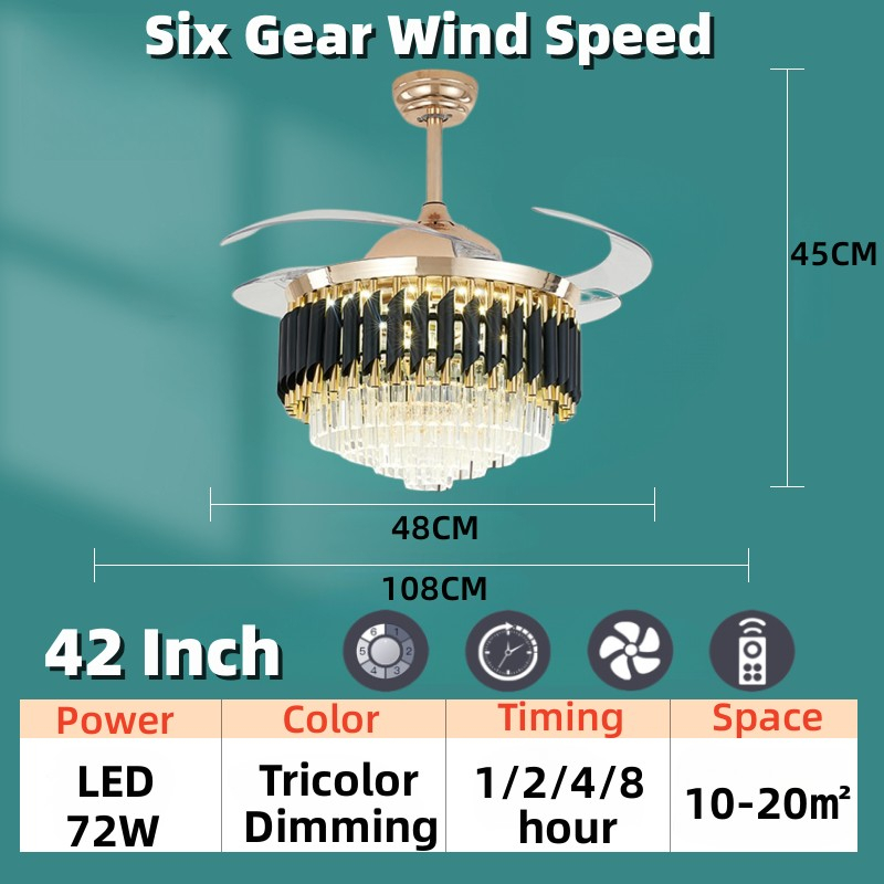 LED Silent 42/48/52 inch Chandelier Ceiling Fans WithRemoter 3color Light 6 Speed For Living/BedRoom