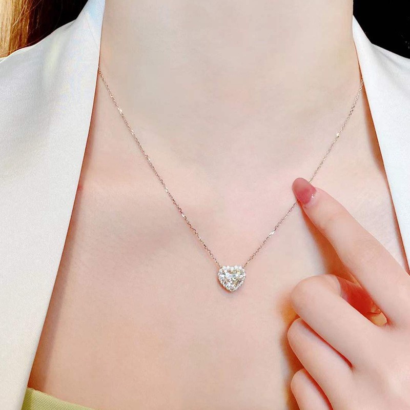 Luxury 925 Silver Cubic Zirconia Diamond Heart Pendant Necklace Woman Fashion Jewelry Accessories