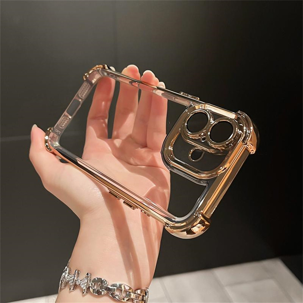 Luxury Acrylic Shock Resistant Case iPhone 16 Pro Max Plus Case With Camera Lens Cover Case iPhone 15 14 Pro Max Case iPhone 11 12 13 Pro Max Case Premium Plating Clear Hard Case