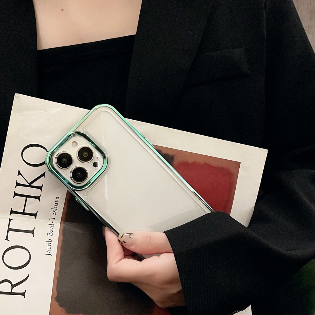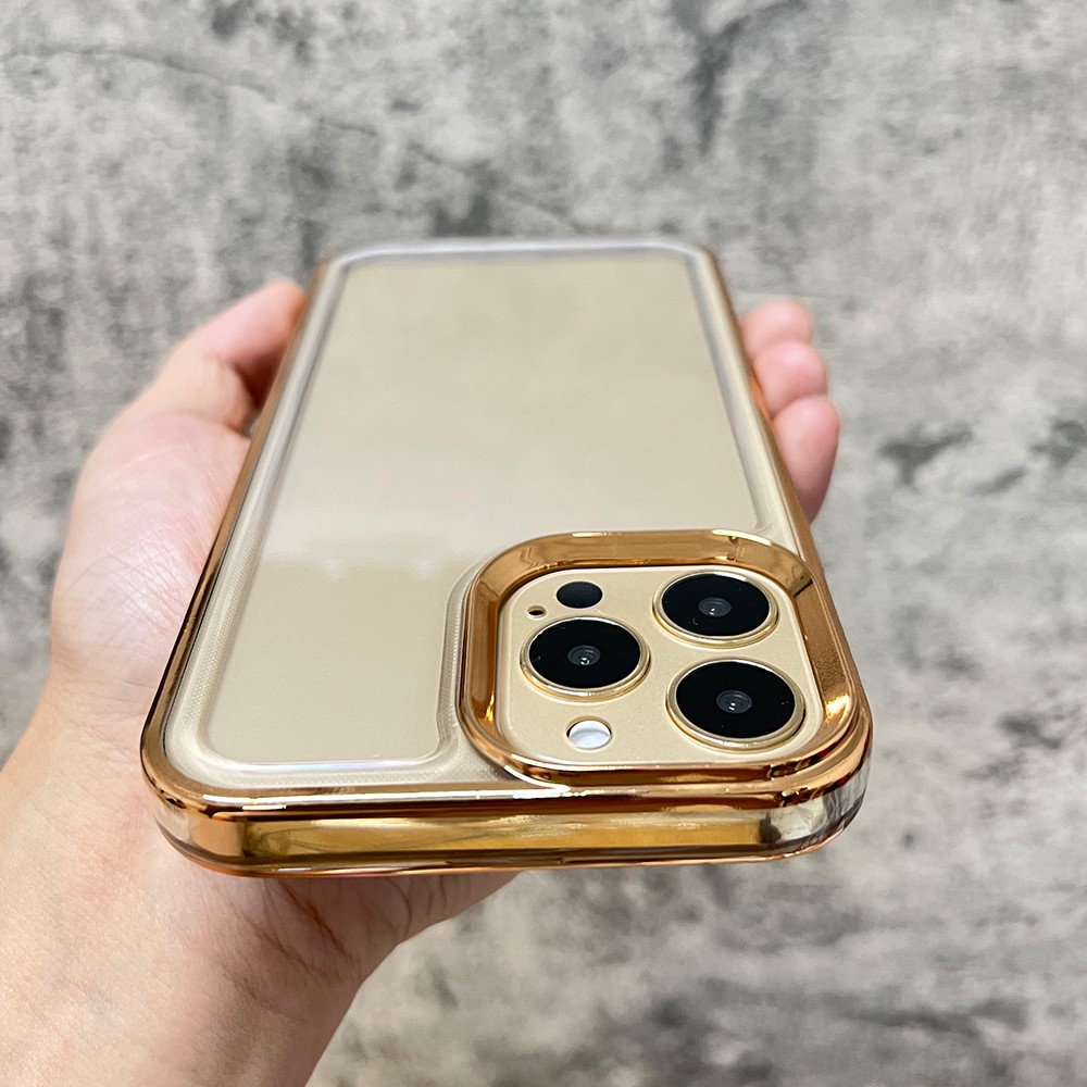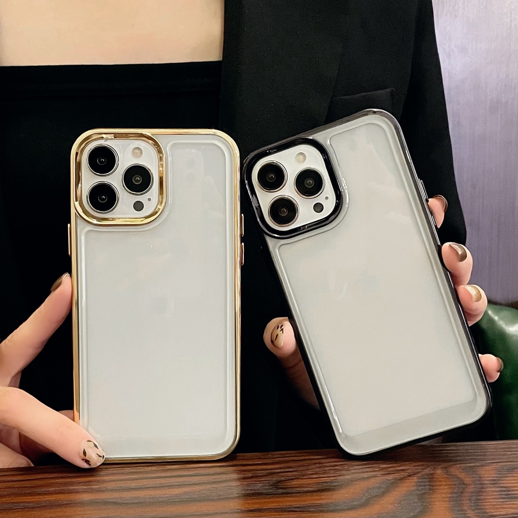 Luxury Acrylic Transparent Silicone Shockproof Case for iPhone 13 12 11 Pro Max X XS XR 7 8 Plus Plating Clear Back Cover