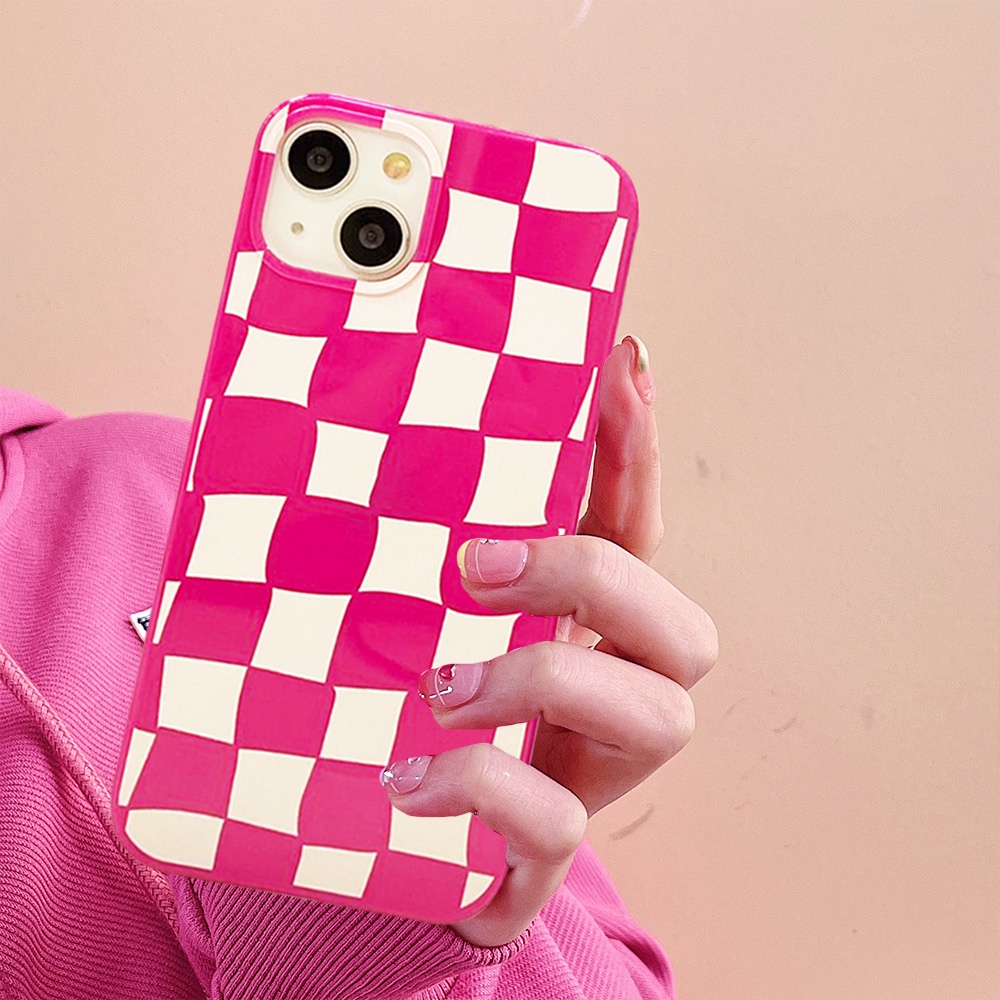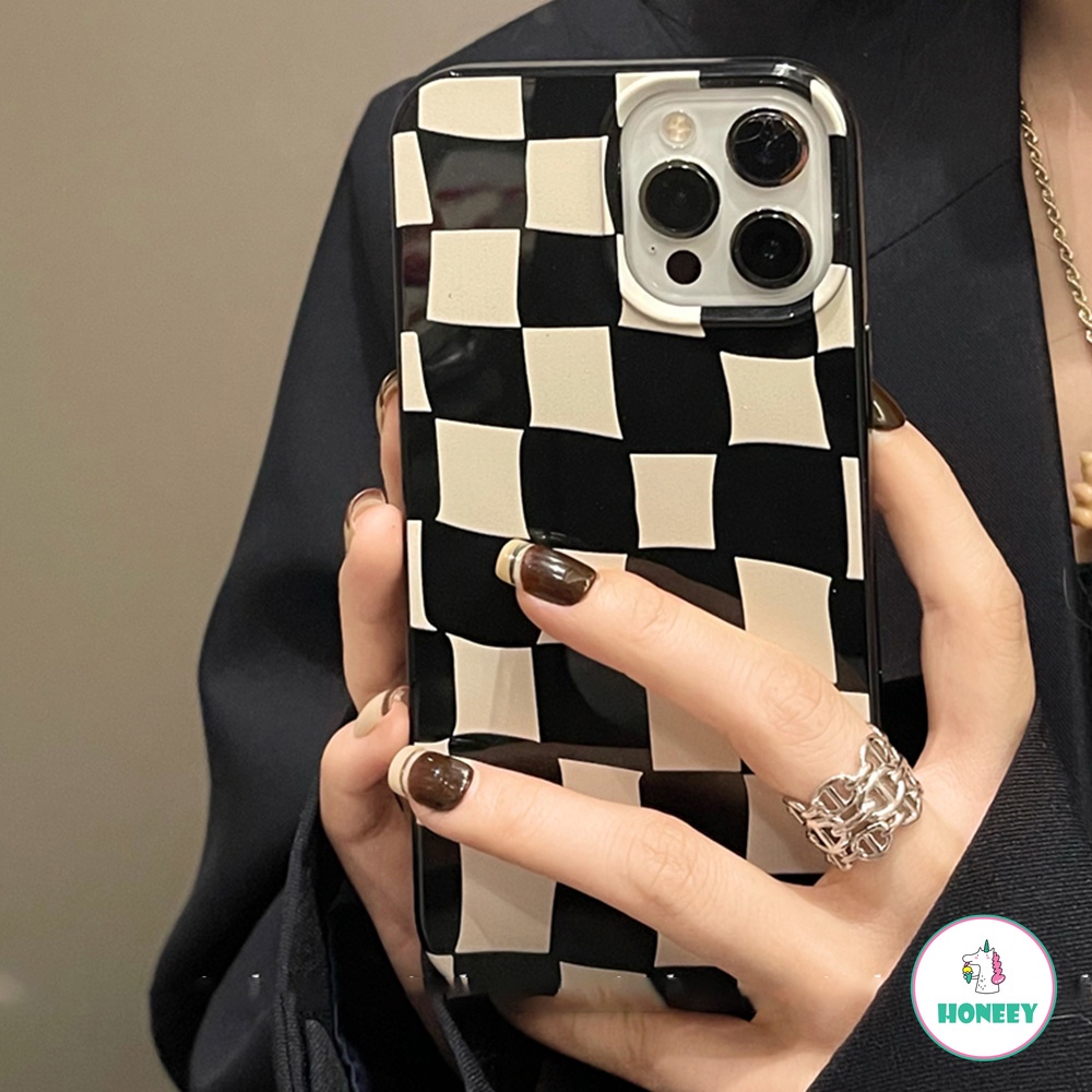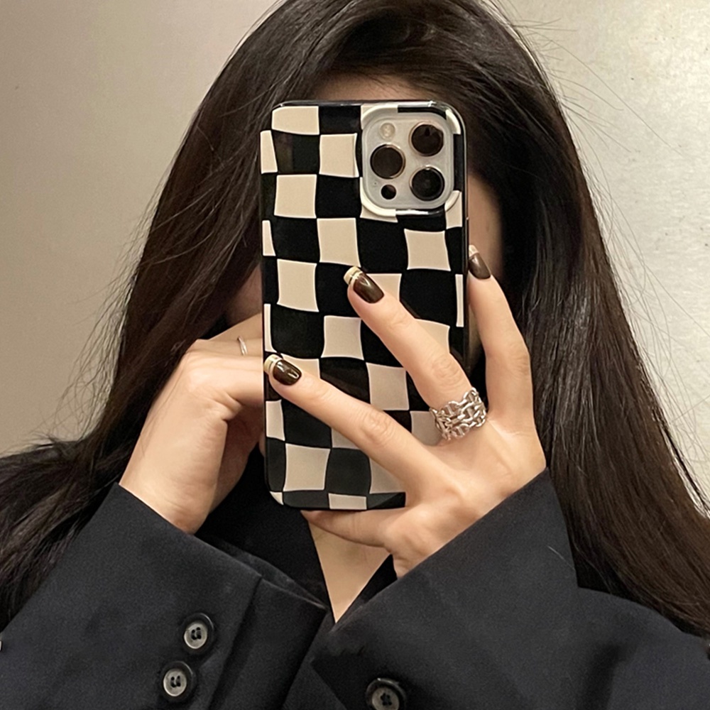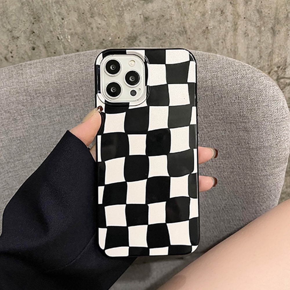 Luxury Black Lattice Grid Gllosy Phone Case for IPhone 15 13 12 11 Pro Max XR 7 8 Plus Smooth Thin Soft TPU Back Shell