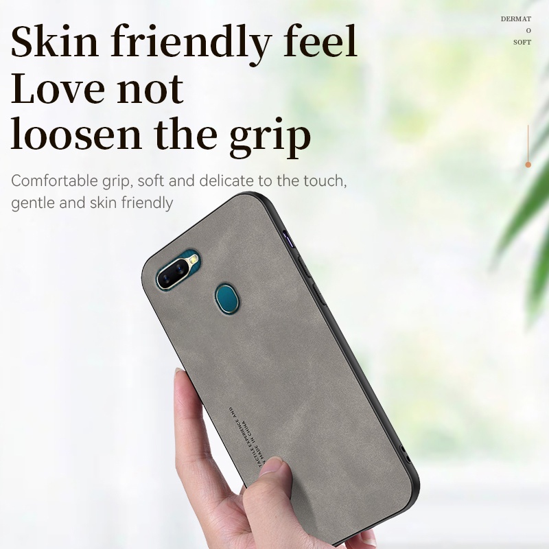 Luxury Case For OPPO A5S A3S A7 A12 A15 A15S Sheepskin Leather Texture Slicone Protective Phone Case Casing Cover With Camera Protection
