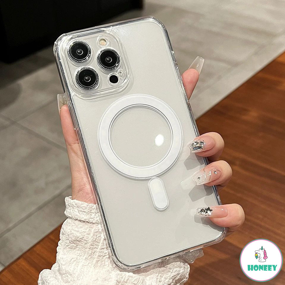 Luxury Clear Magnetic Wireless Charging Phone Case for iPhone 16 15 14 13 12 11 Pro Max Anti-dirt Shockproof Hard Back Cover