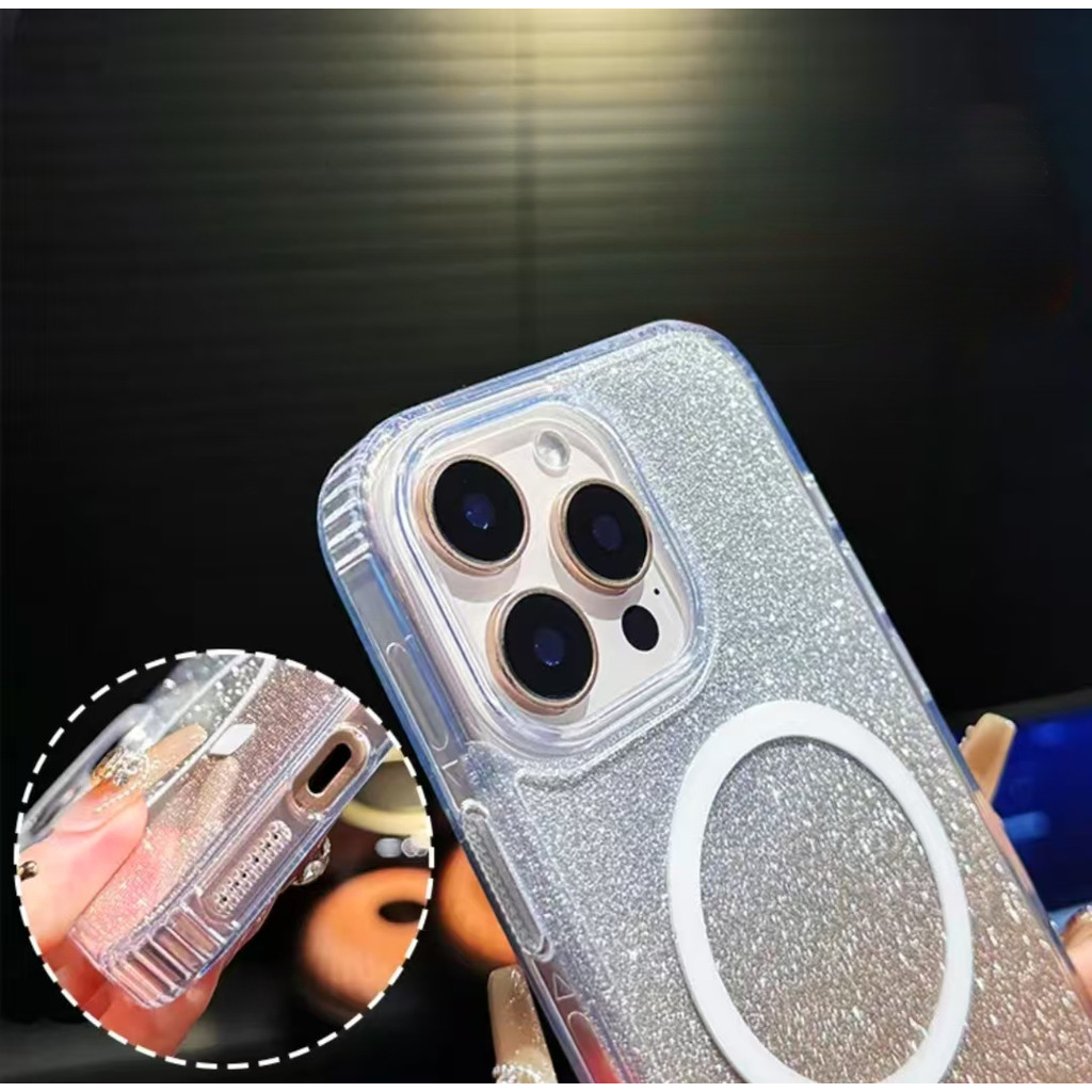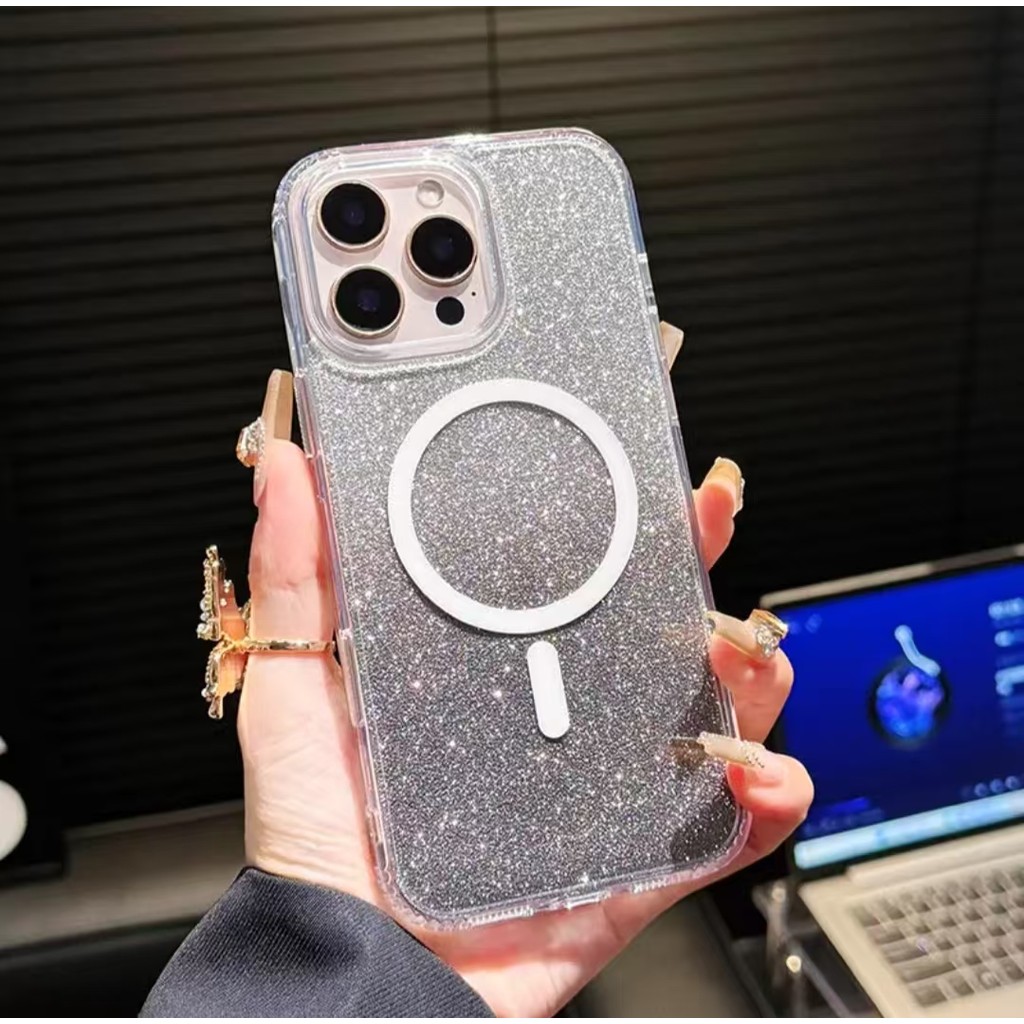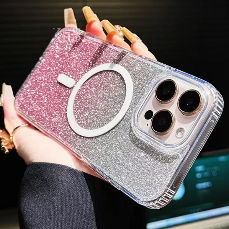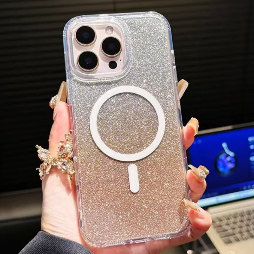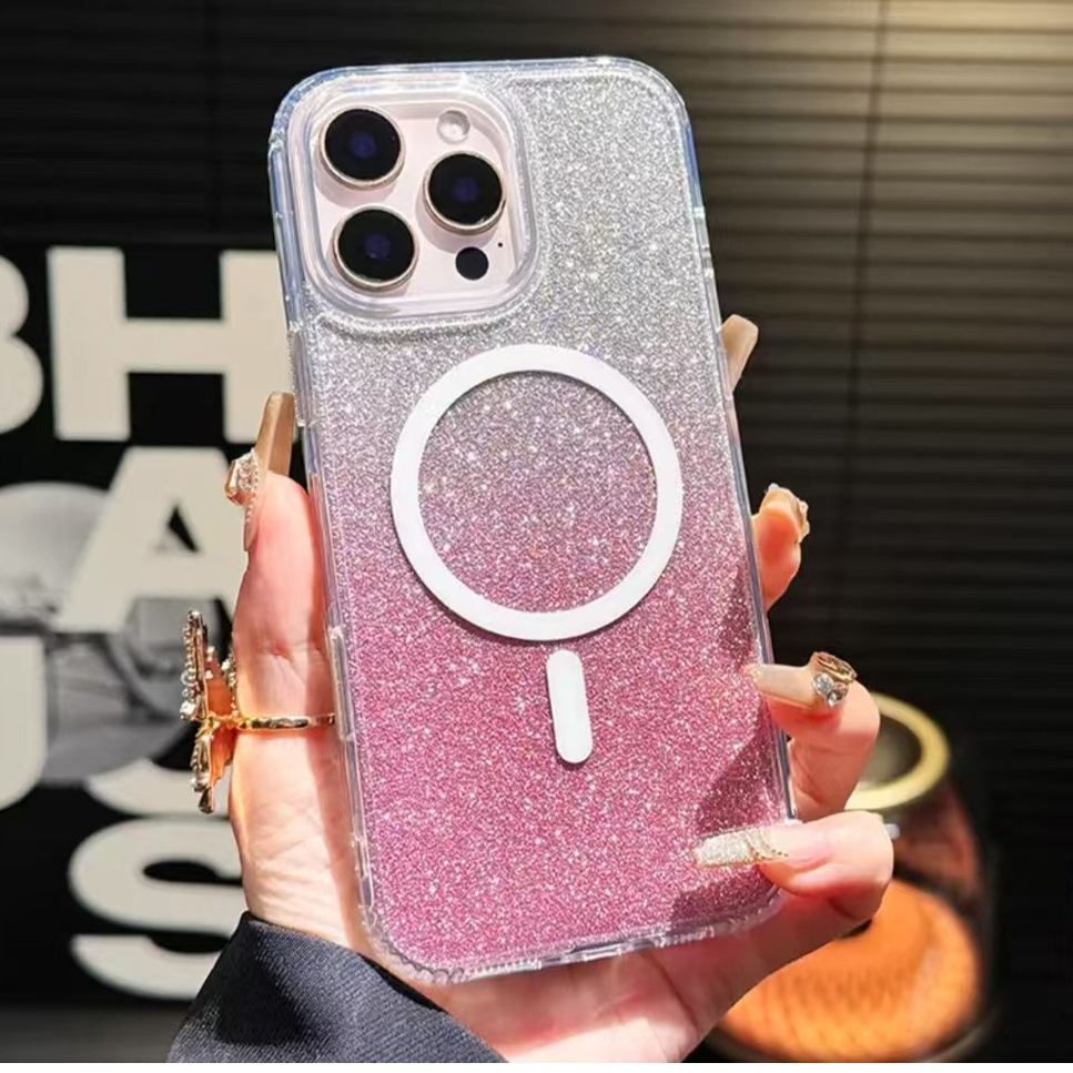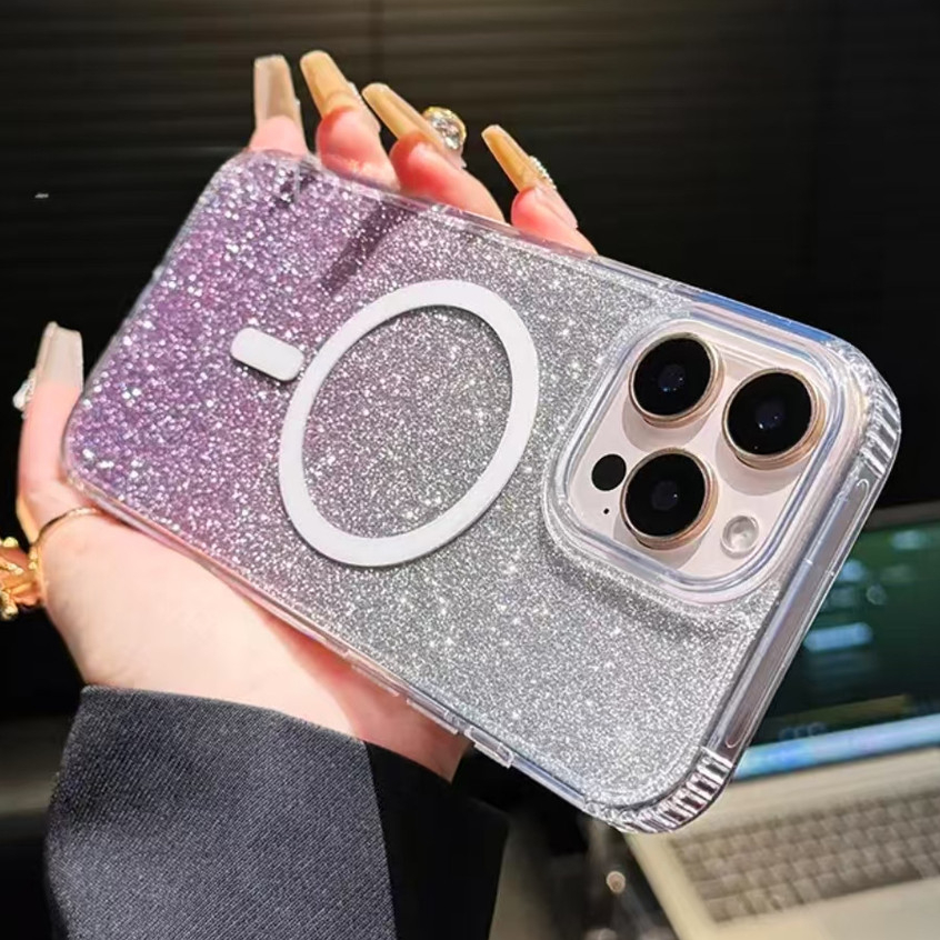 Luxury Flash Laser Gradient Powder Card Crystal Clear Acrylic Magnetic Shockproof Case Compatible for IPhone 16 15 14 13 12 11 Pro Max Plus X XS Max Xr 7 8 Plus SE