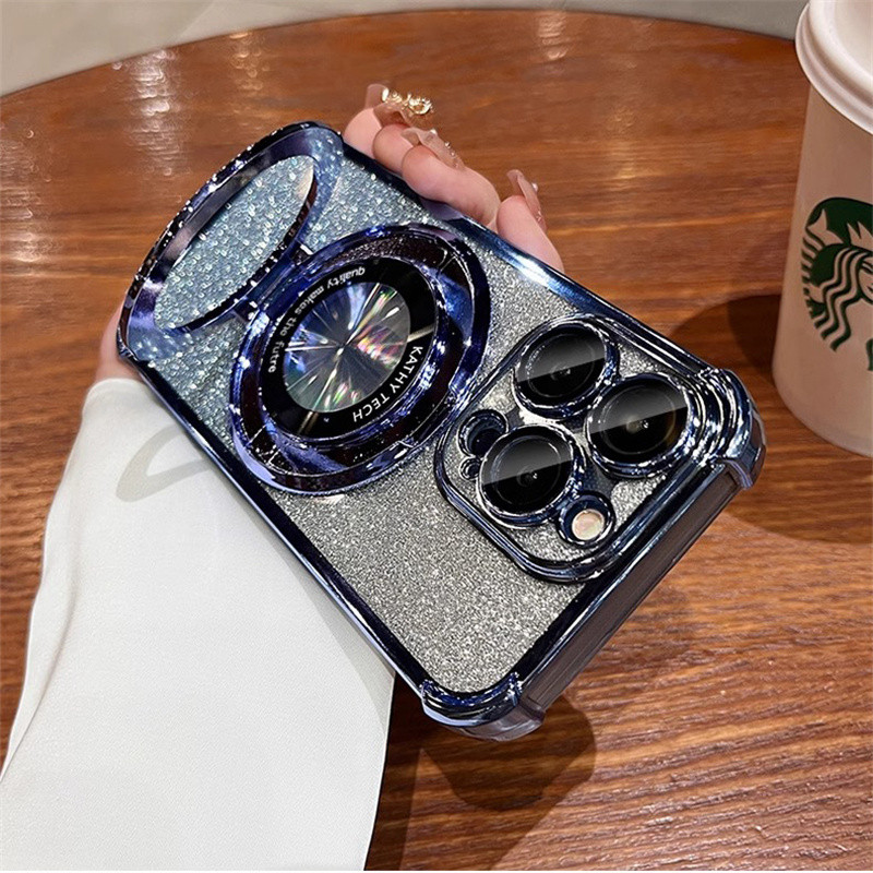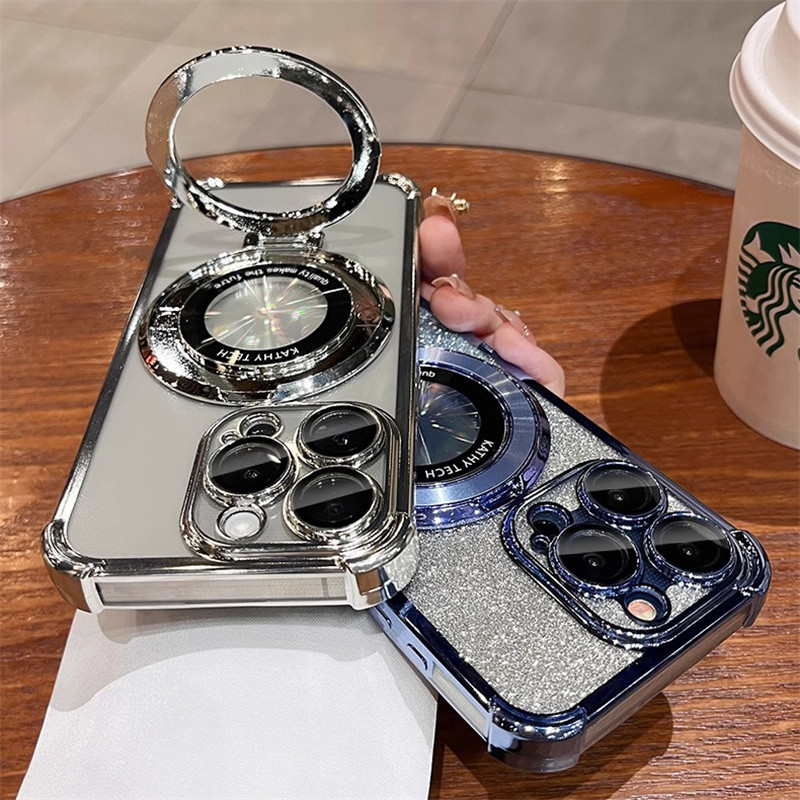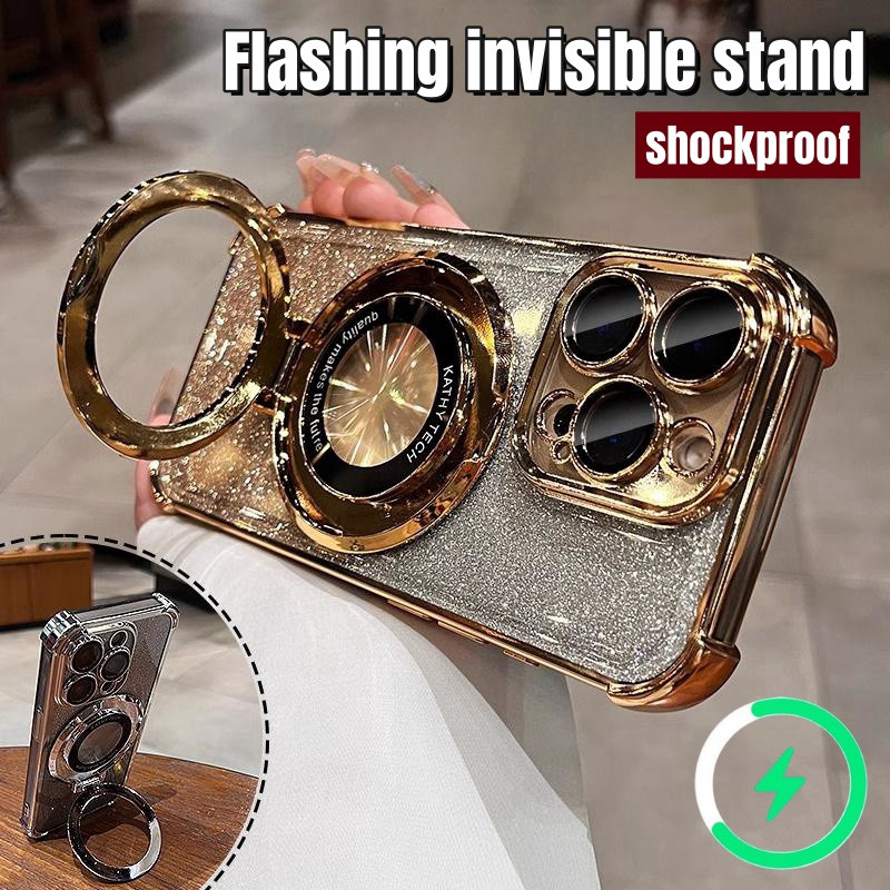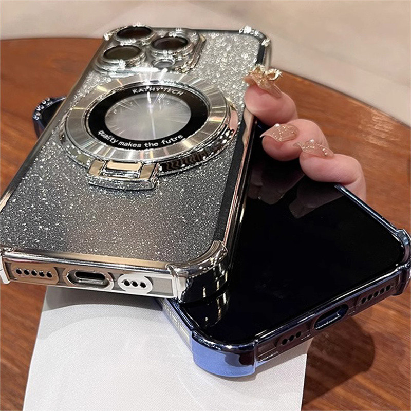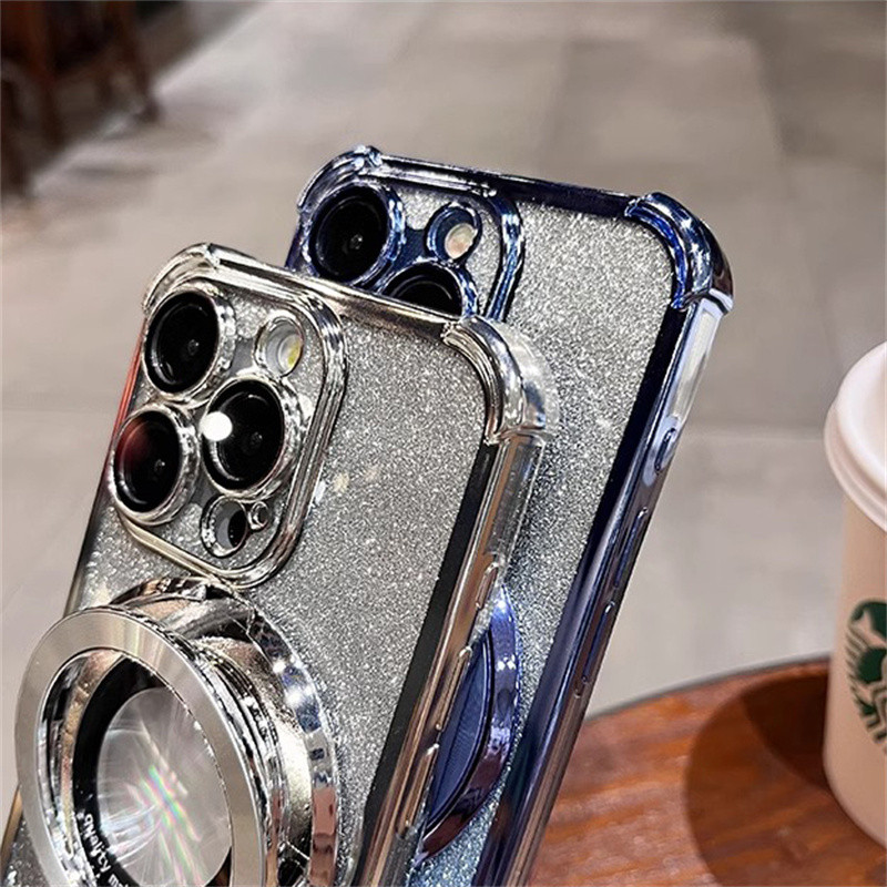 Luxury Flashing Magnetic Case iphone 16 15 Pro Max Case with camera lens cover iphone 11 12 13 14 Pro Max 16 Plus Case Invisible stand Shockproof TPU Soft Phone Case