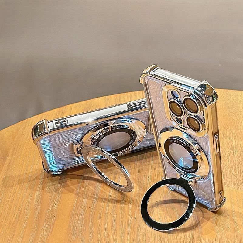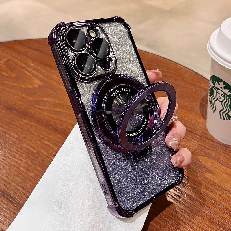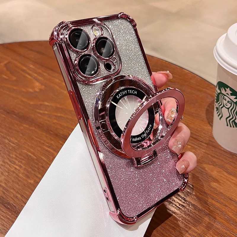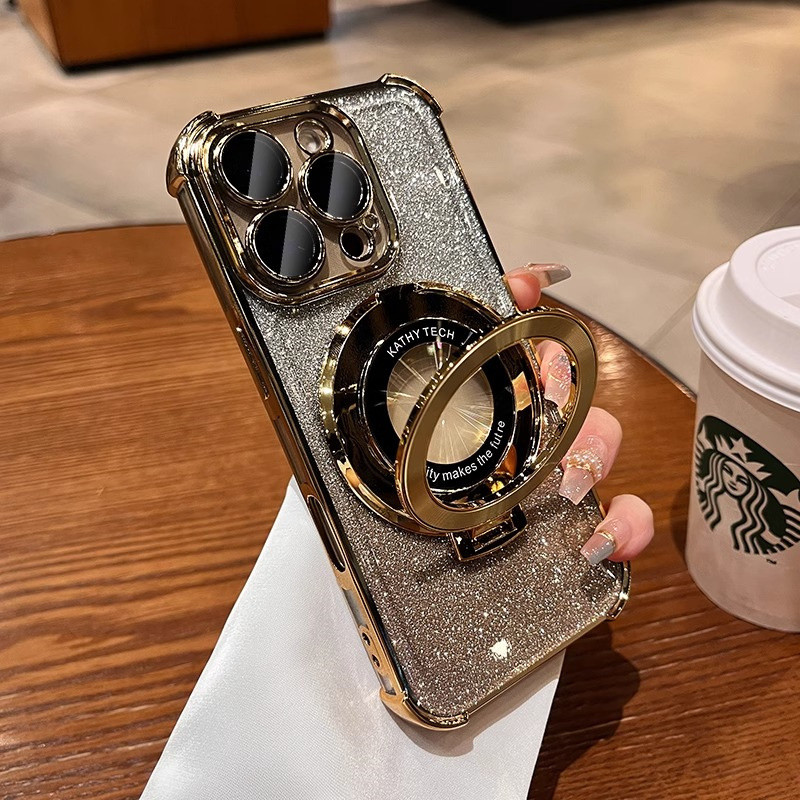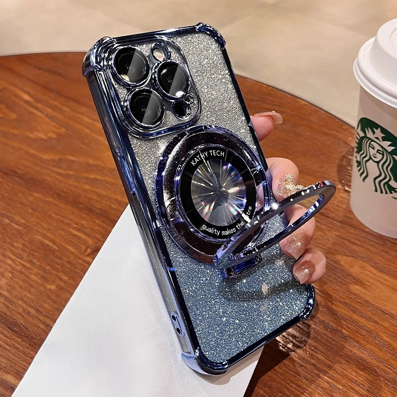 Luxury Flashing Magnetic Case iphone 16 15 Pro Max Case with camera lens cover iphone 11 12 13 14 Pro Max 16 Plus Case Invisible stand Shockproof TPU Soft Phone Case