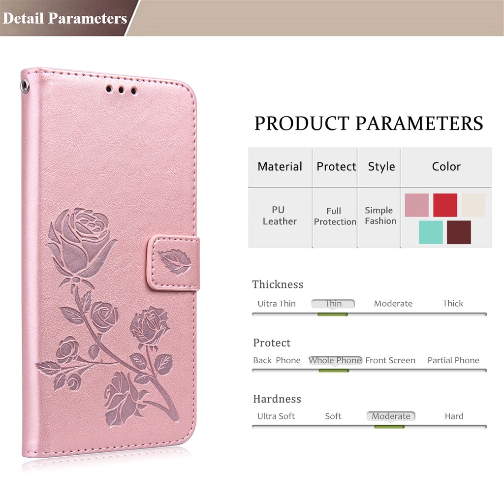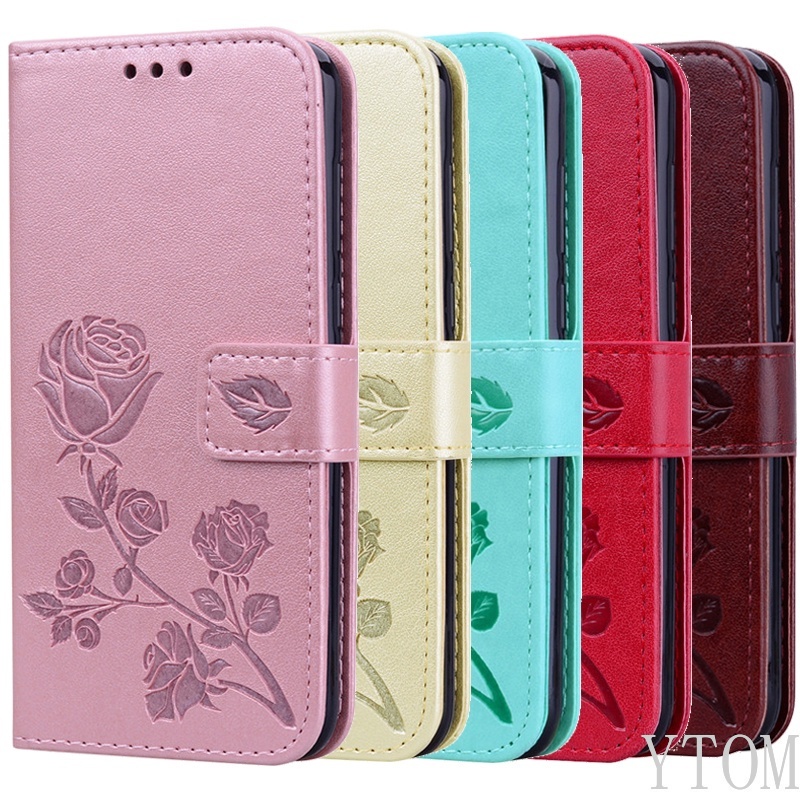 Luxury Flip Wallet Phone Case for OPPO A3S A5 A5S A7 A8 A9 A12E A12 A15 A16 A31 2020 A52 A54 4G A92 A94 Flower Embossed PU Leather Soft TPU Silicone Shockproof 5 Color Case Cover