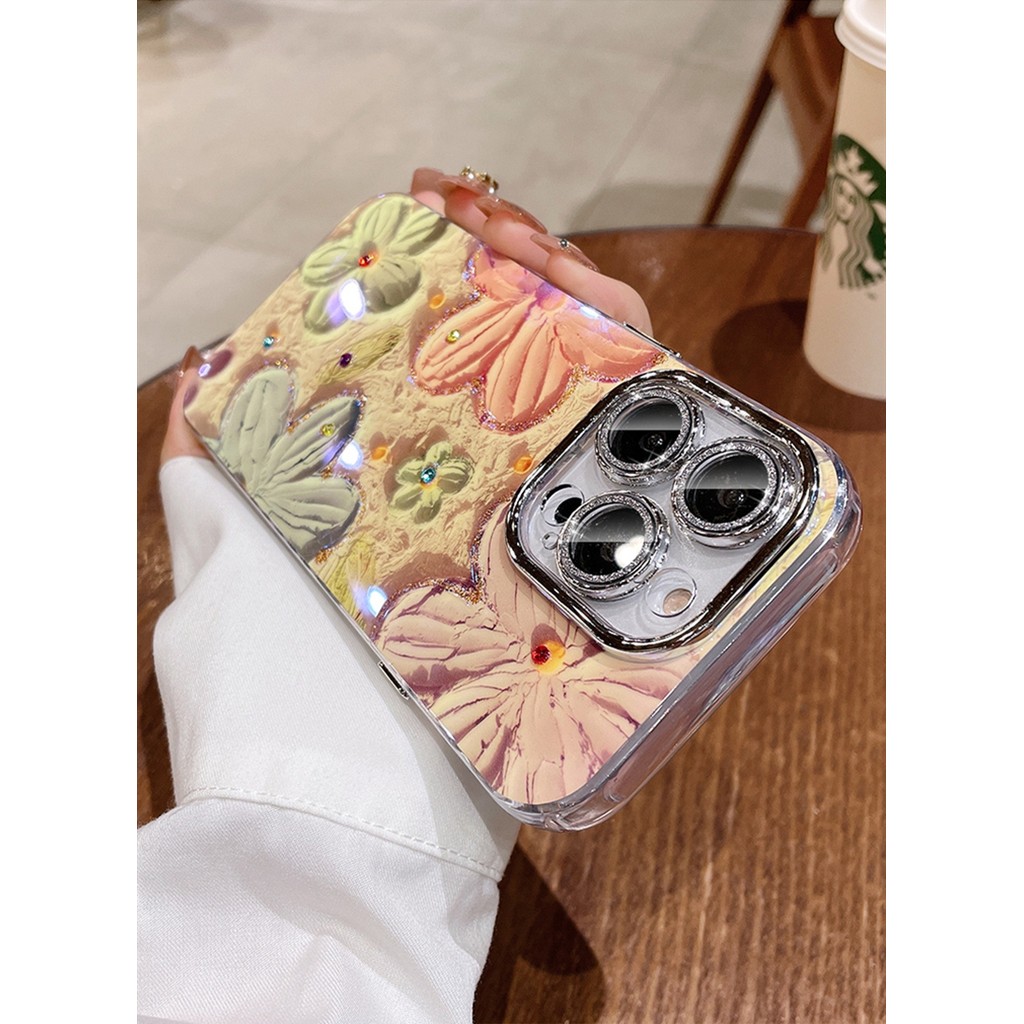 Luxury Glitter Flower Pattern Phone Case For iPhone 11 12 13 14 15 16 Pro Max Plus Shockproof Bumper Cases Cover