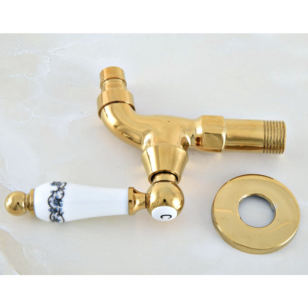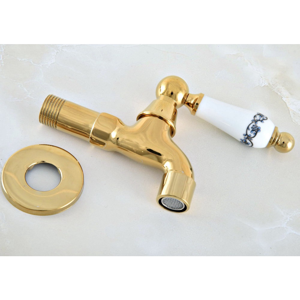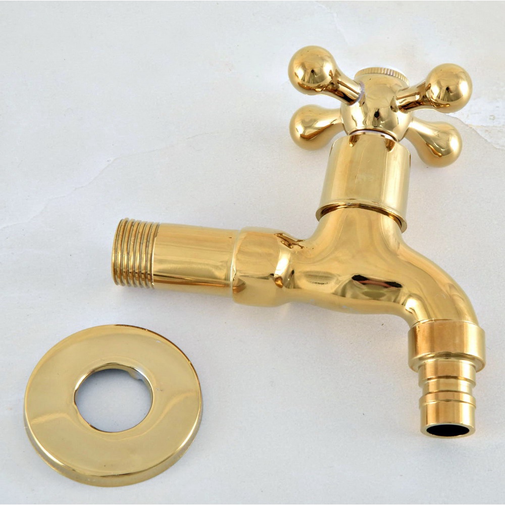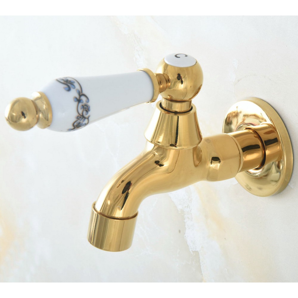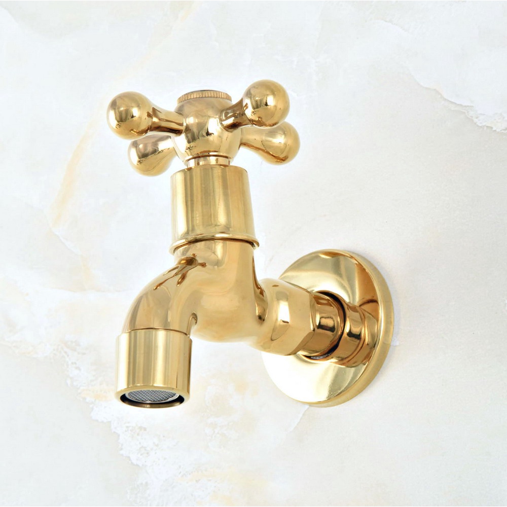 Luxury Gold Color Brass Wall Mount Washing Machine Taps Bathroom Corner Mop Pool Small Tap Outdoor Garden Cold Water Faucet Szh309