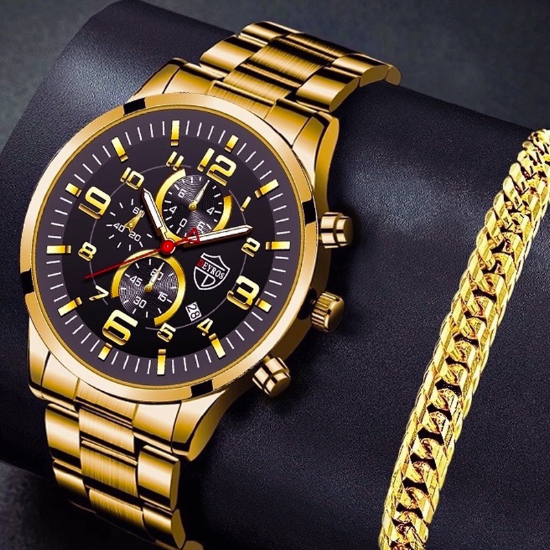 Luxury Gold Watch for Men Watches Stainless Steel Quartz Calendar Watch for Men with Gold Bracelet