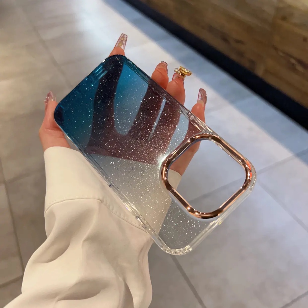 Luxury Gradient Glitter Transparent phone case for iPhone15 14 13 12 11 Pro Max 14 15 Plus Casing shock-proof electroplated photo frame protection hard back cover