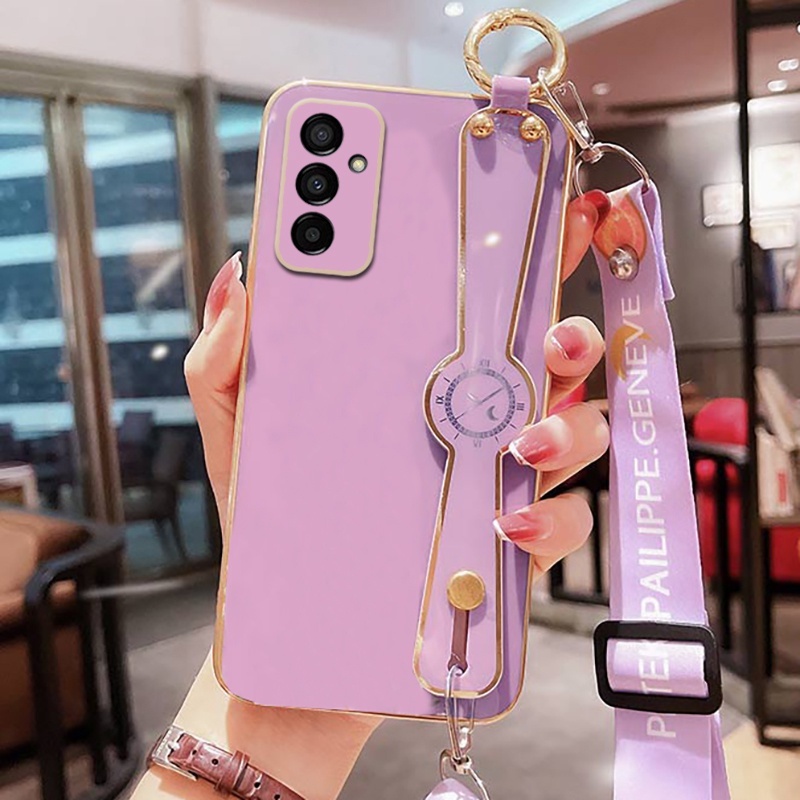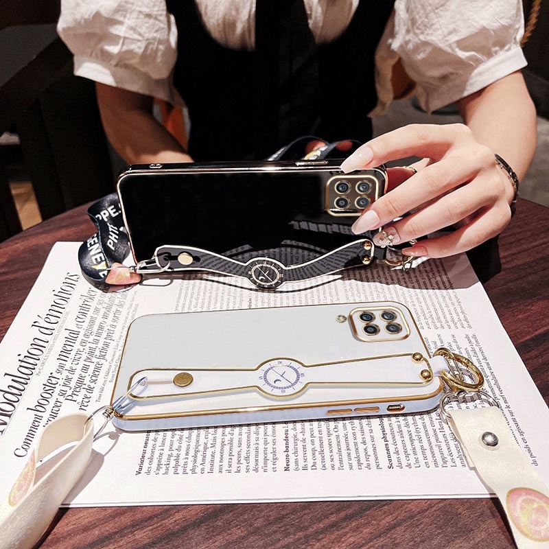 Luxury Phone Case OPPO RENO 11 11Pro 11F 12 12F 12Pro 13 13F 13Pro 14 14Pro 14F A79 5G A74 A54 A55 with Wrist Band Phone Holder Casing +Crossbody Neck Strap Lanyard