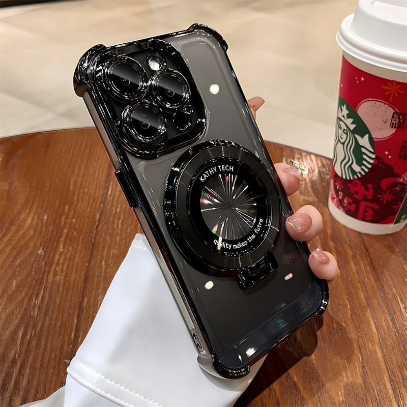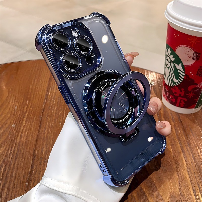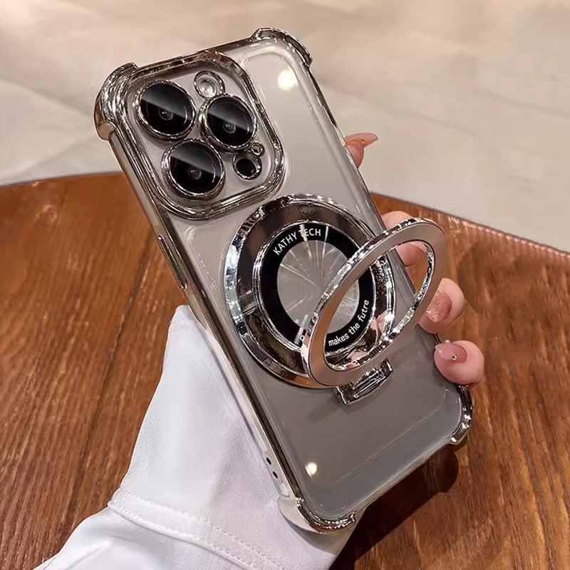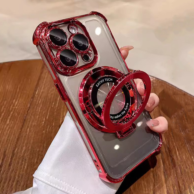 Luxury Ring Bracket Magnetic Plating Phone Case for IPhone 16 15 14 13 12 11 Pro Max 15 Plus Camera Protection Kickstand Shockproof Acrylic Hard Silicone Cover