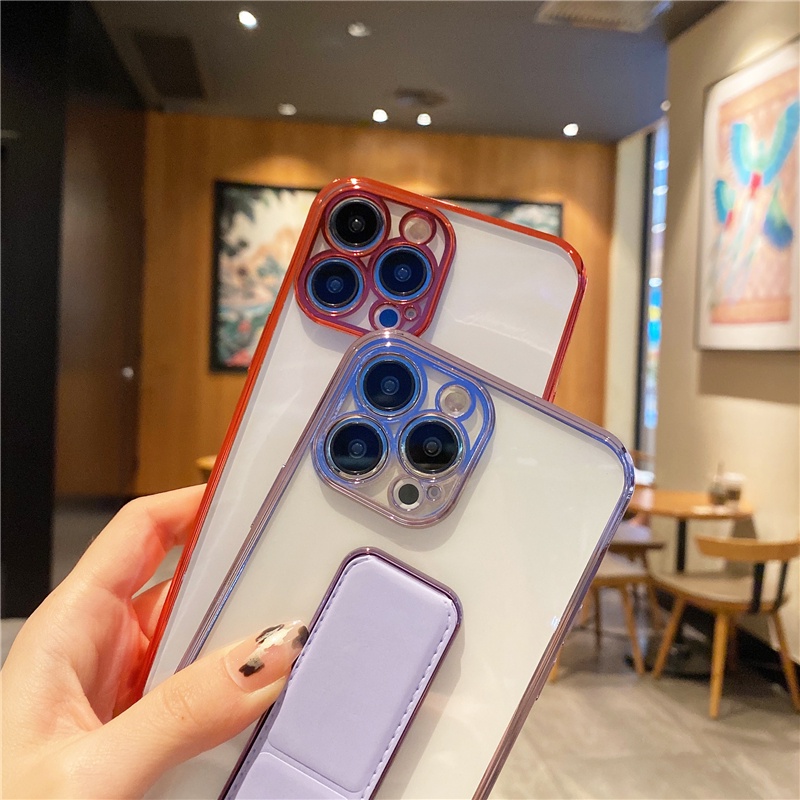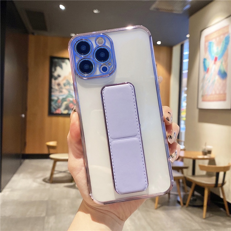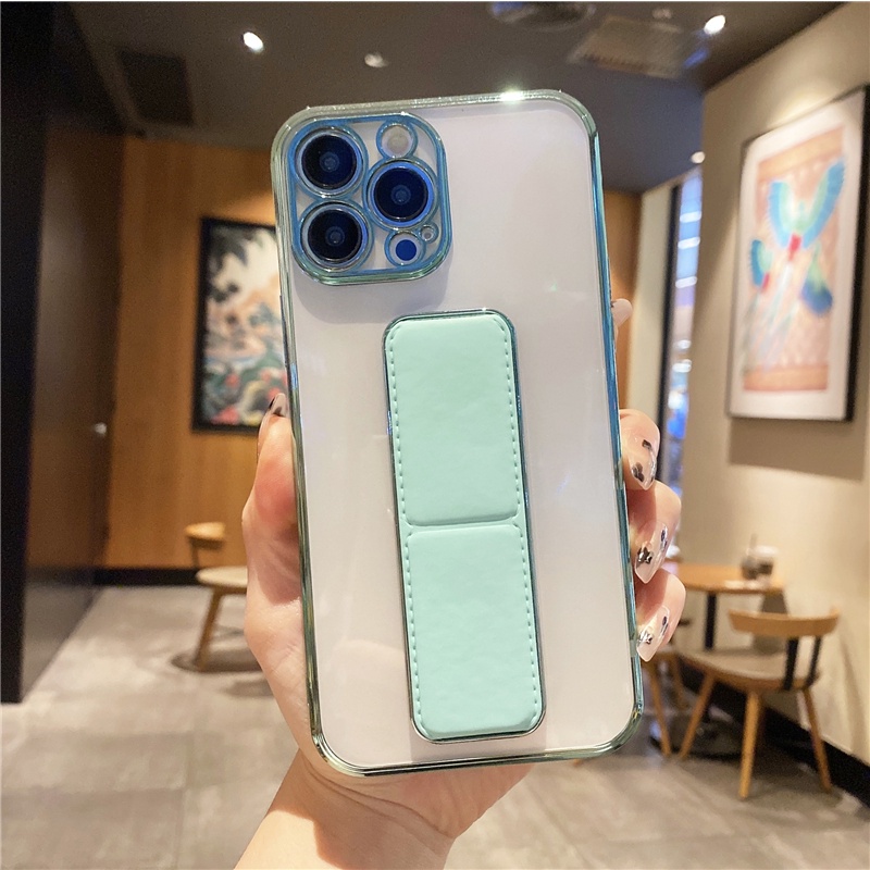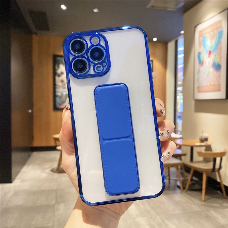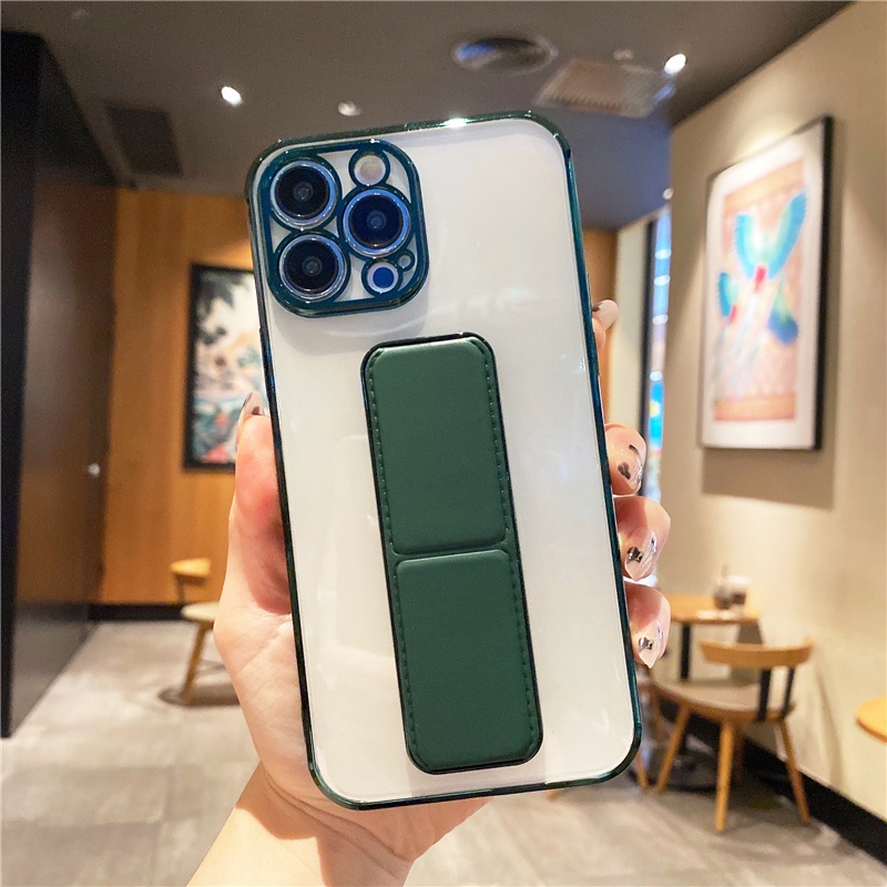 Luxury Transparent Magnetic Soft Case For iPhone 12 11 Pro Max XR XS X 13 ProMax Shockproof Cover With Stand Holder T08