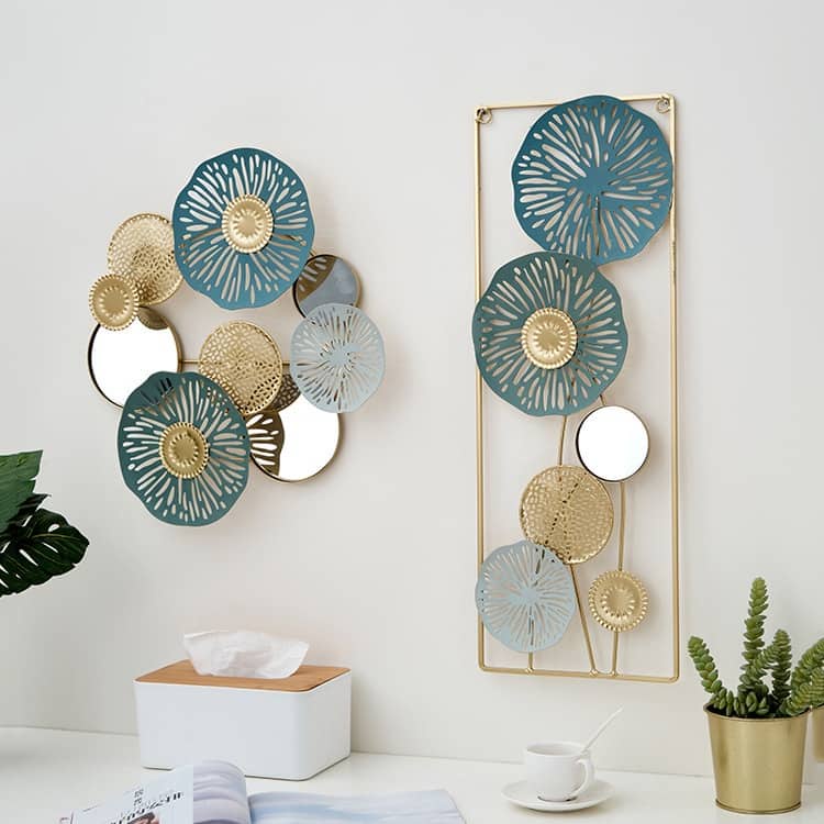 Luxury Wall Hanging Decoration Nordic Mirror And Metal Creative Lotus Leaf Modeling Light Iron