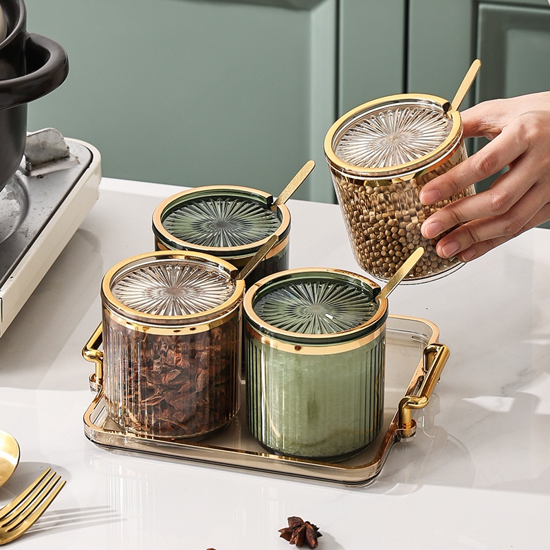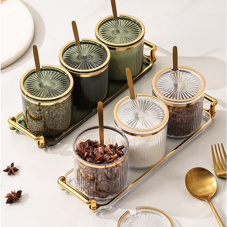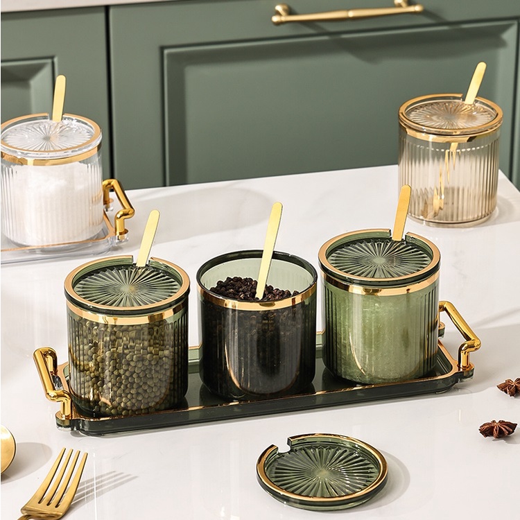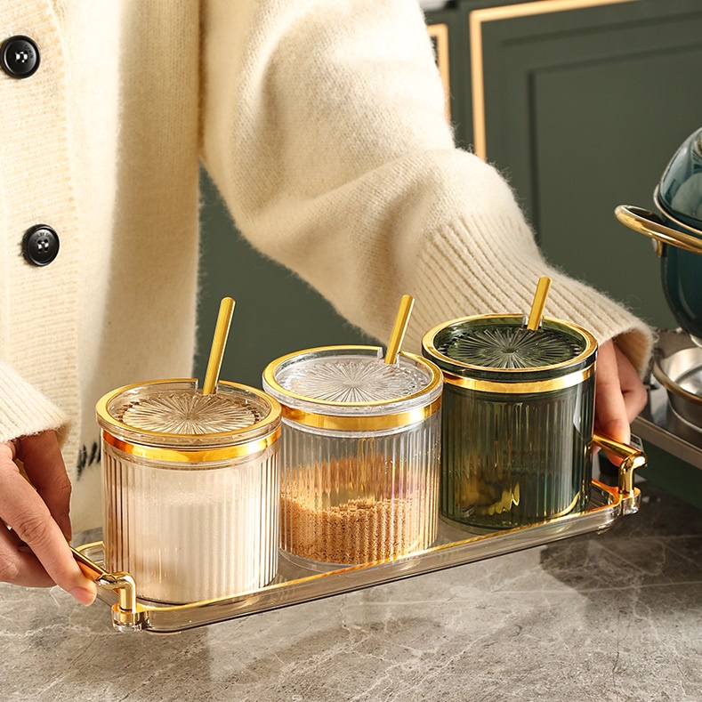 Luxury condiment jar kitchen condiment storage container Condiment box set sugar salt condiment crisper household food container