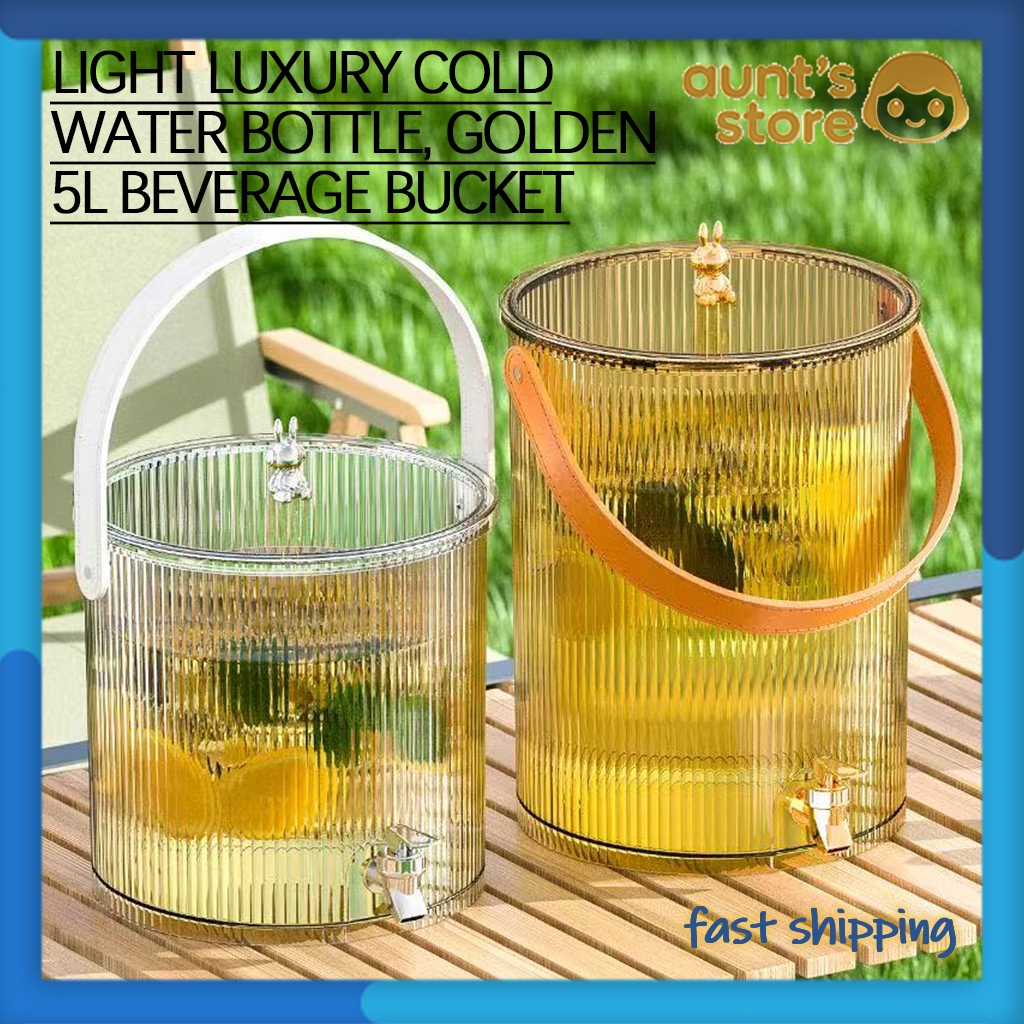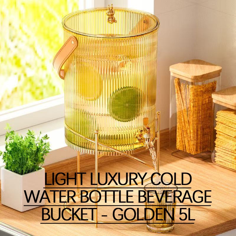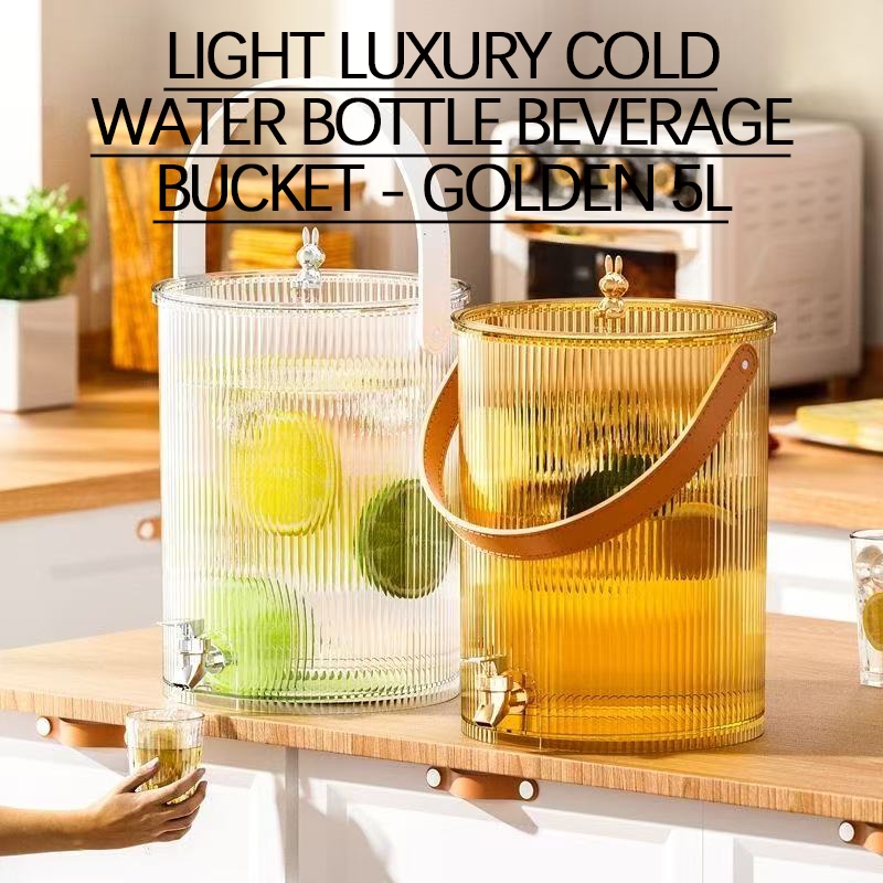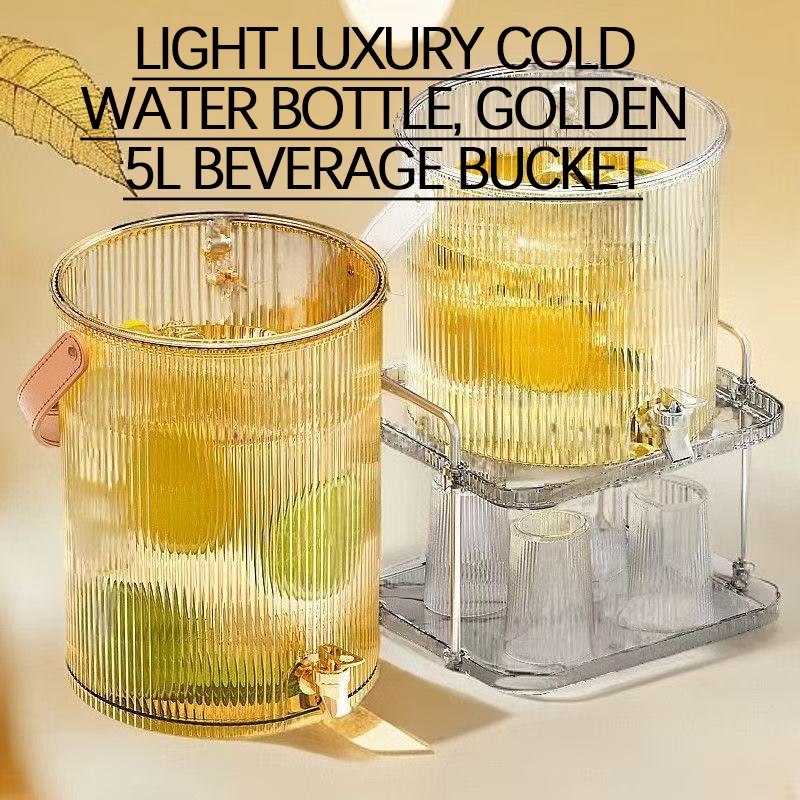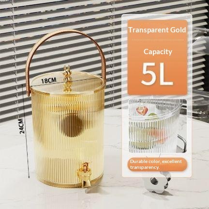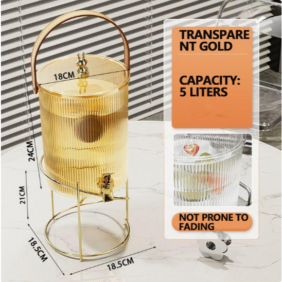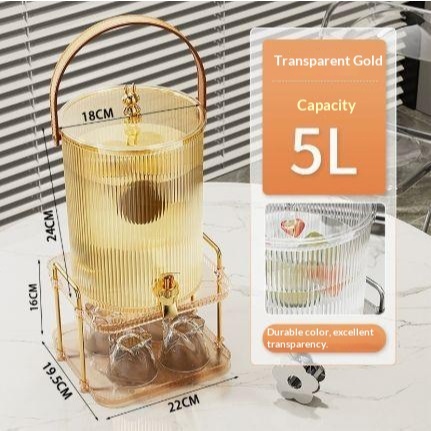 Luxury-sleek transparent gold 5-liter cold water pitcher with faucet and juice drink dispenser