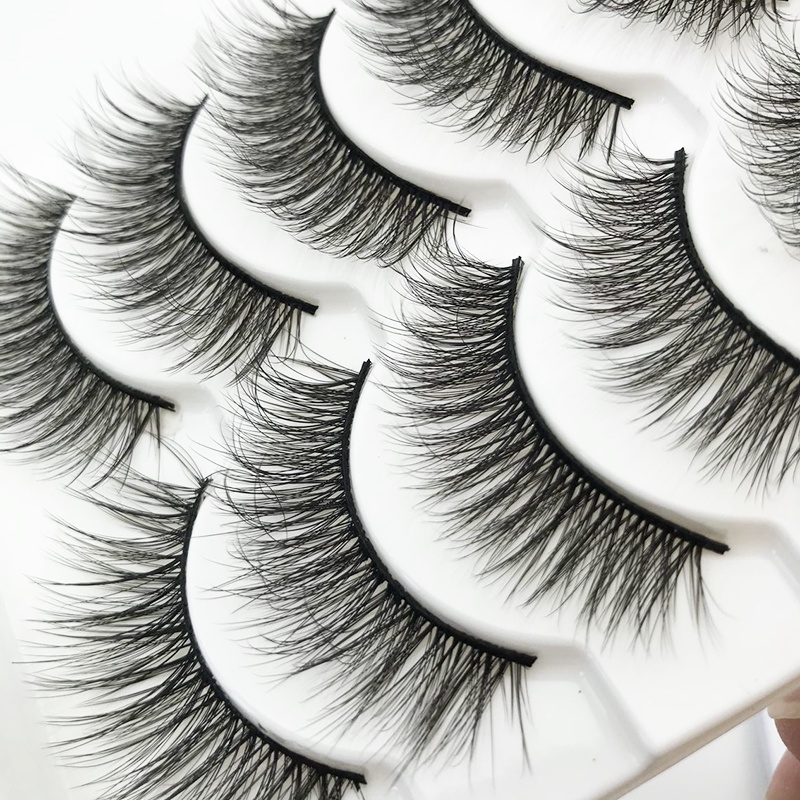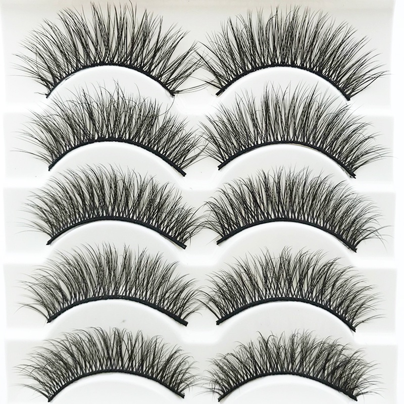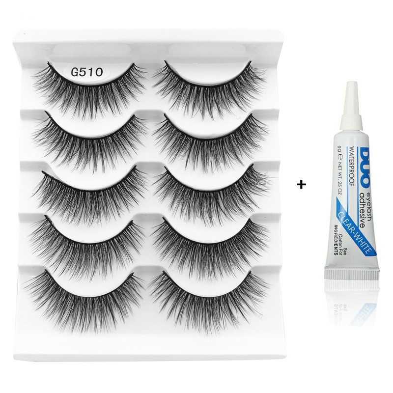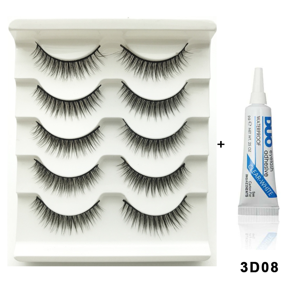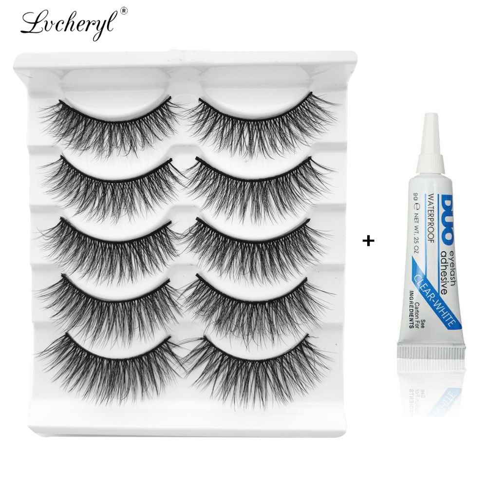 Lvcheryl False Eyelashes With Glue Natural 3d Fake Faux Mink Lashes Set Extension 5 Pairs
