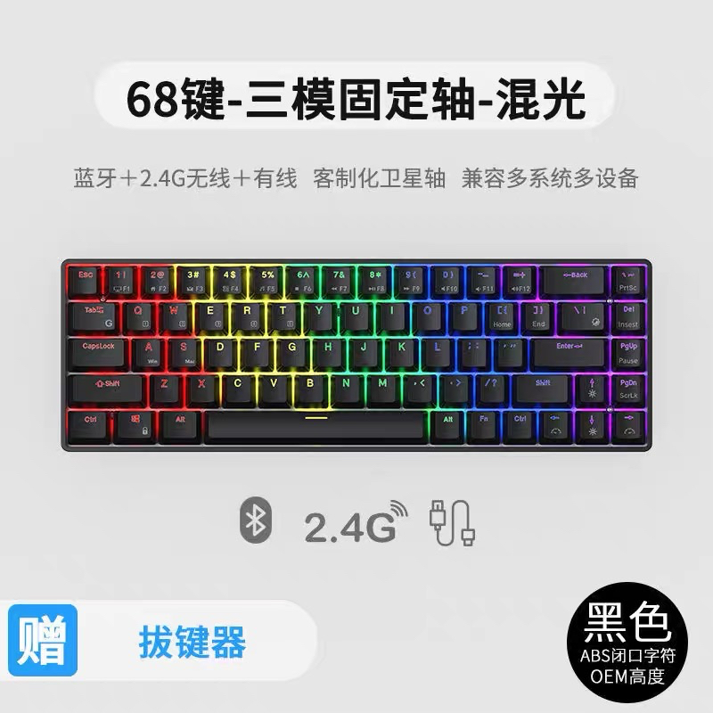 Lychee Gaming DK61 dk68 dk84 RGB Tri-mode Bluetooth Wireless Mechanical Keyboard 61 keys RGB Light 2.4g usb wireless type-c hotswap