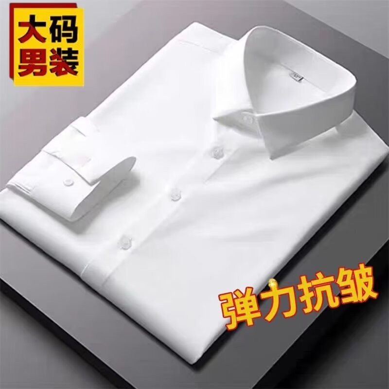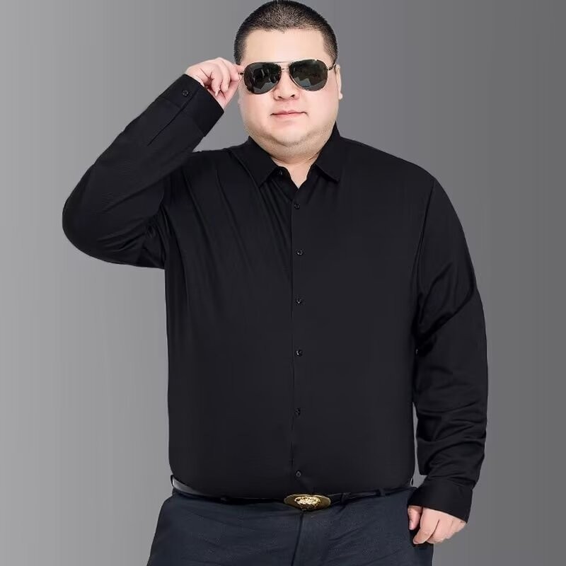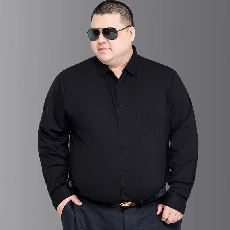 M-8XL Fat Man Plain Business Shirt Plus Size Long Sleeve Shirt Men Simple Causal White Top