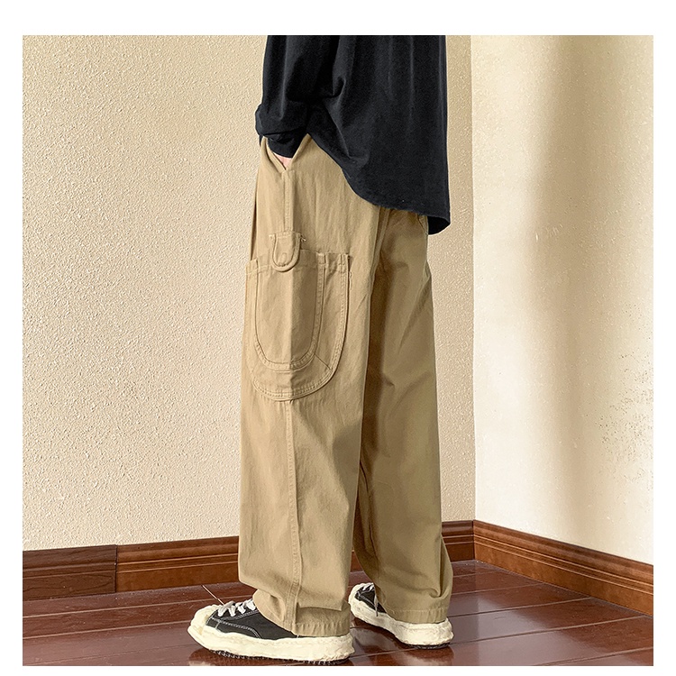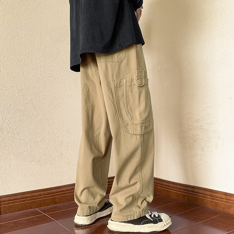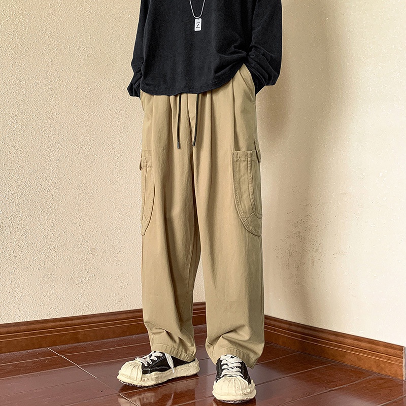 M-8XL Plus Size Baggy Cargo Pants Men Wide Leg Long Pants Casual Loose Plain Color Big Size Pants Fat Man