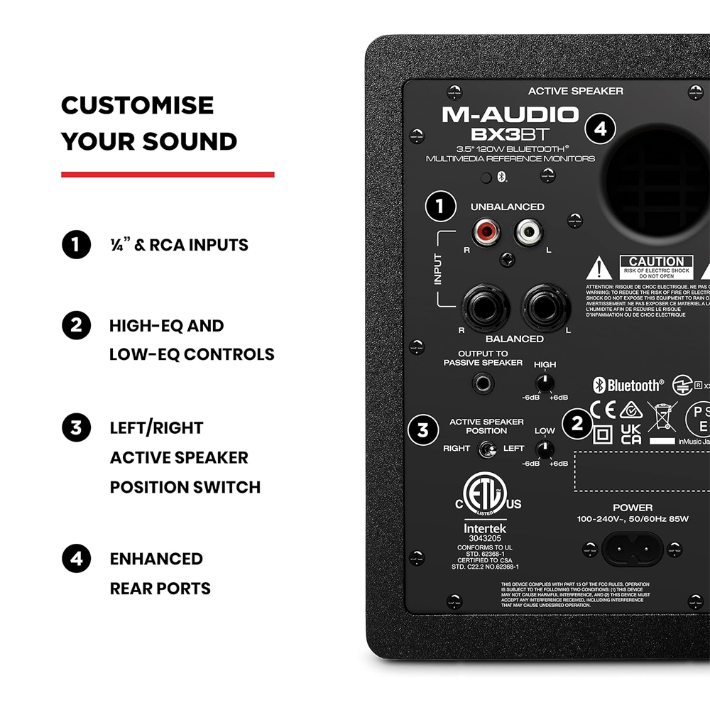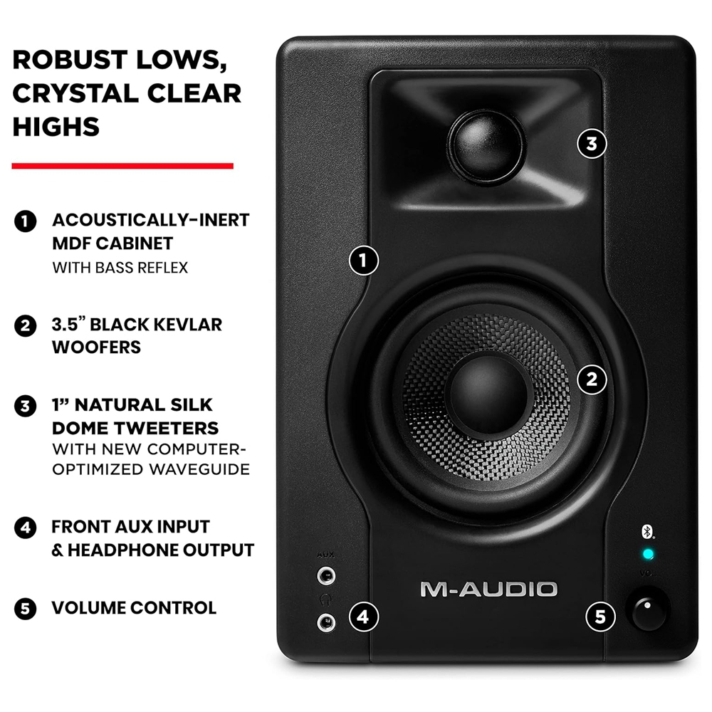 M-Audio BX3BT 120W (Pair) Powered Bluetooth Studio Monitors Speakers for Gaming, Music Production