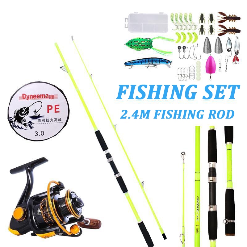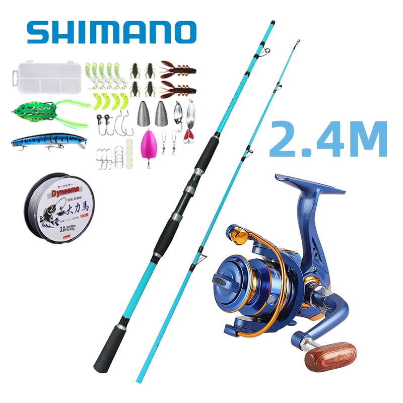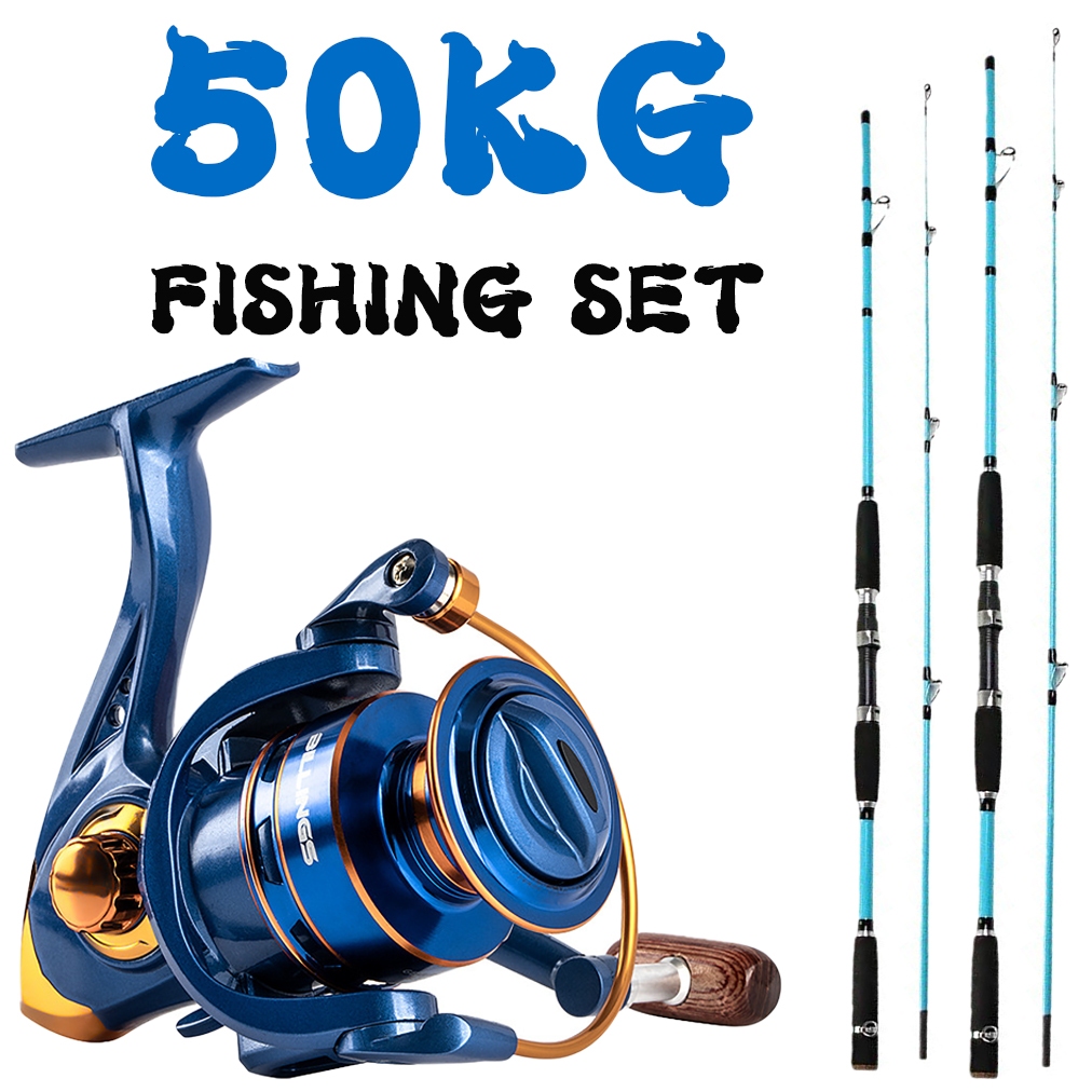 M Fishing Rod Set Spinning Set 1.8-2.1M 2 Sections Metal 5:2:1 Reel Light Rod Blue Fishing Set