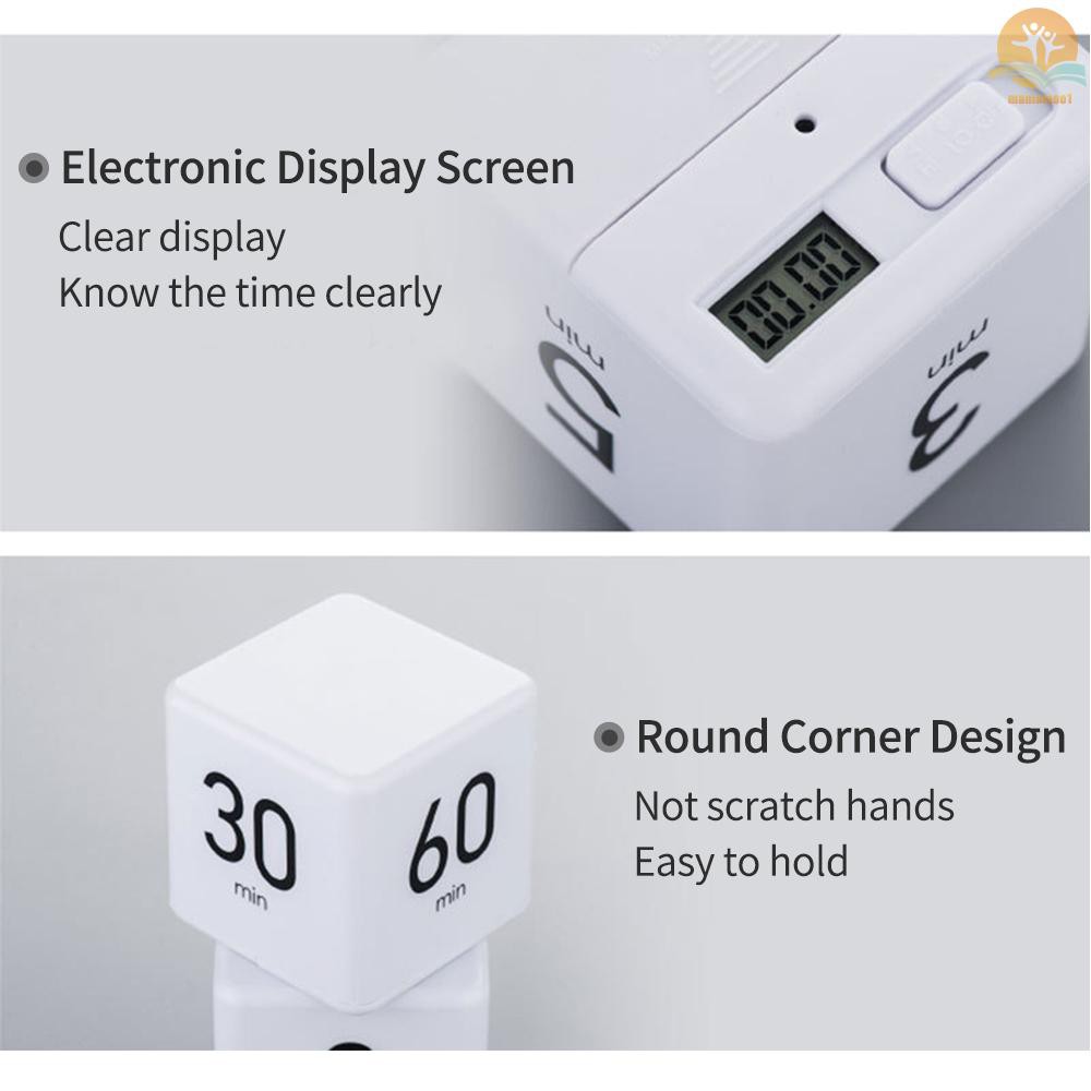 M^M Portable Cube Timer Digital Kitchen Timer Countdown Alarm 15-20-30-60 Minutes Flip Timing with Digital Display Time Management for Study Sports Cooking Gaming Office