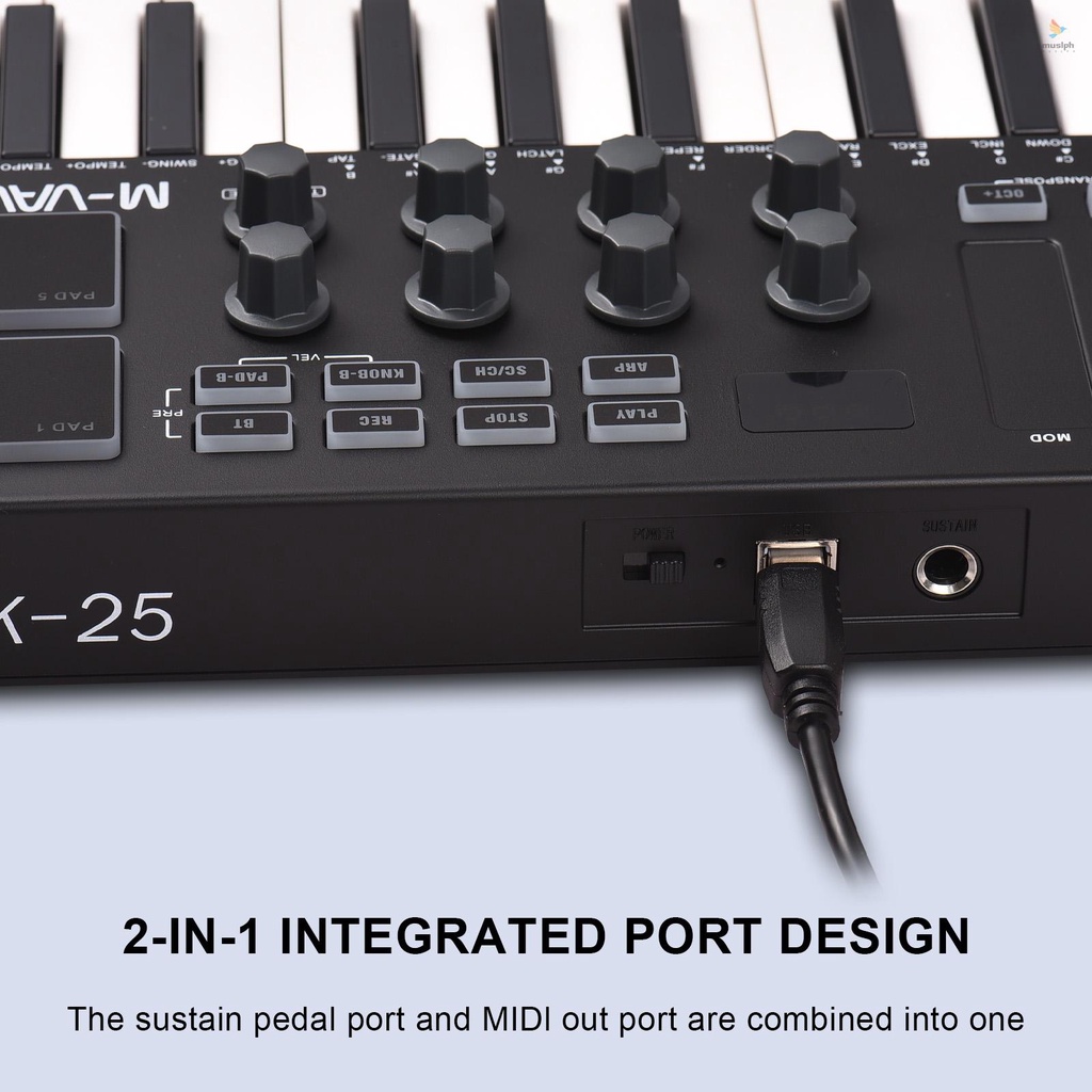 M-VAVE 25-Key MIDI Control Keyboard Mini Portable USB Keyboard MIDI Controller with 25 Velocity Sensitive Keys 8 RGB Backlit Pads 8 Knobs