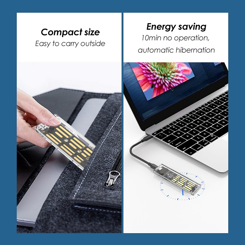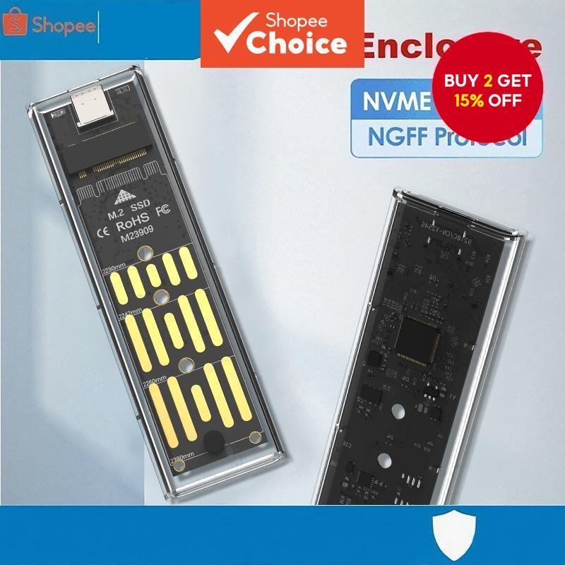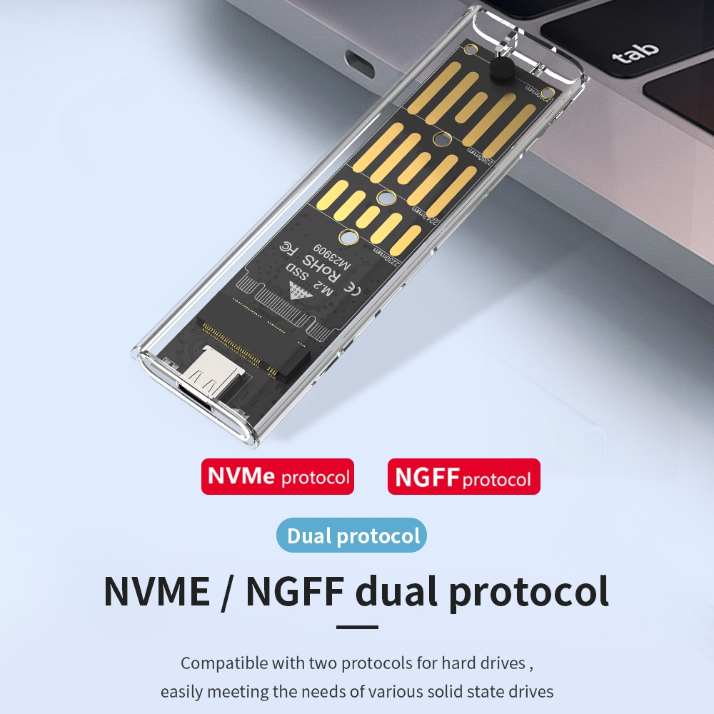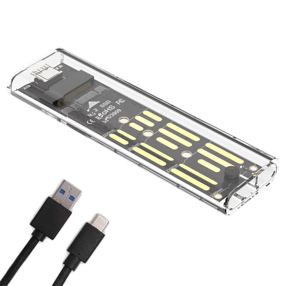 M.2 NVMe SSD Transparent Hard Drive Enclosure NGFF NVMe Dual Protocol Solid State External Enclosure
