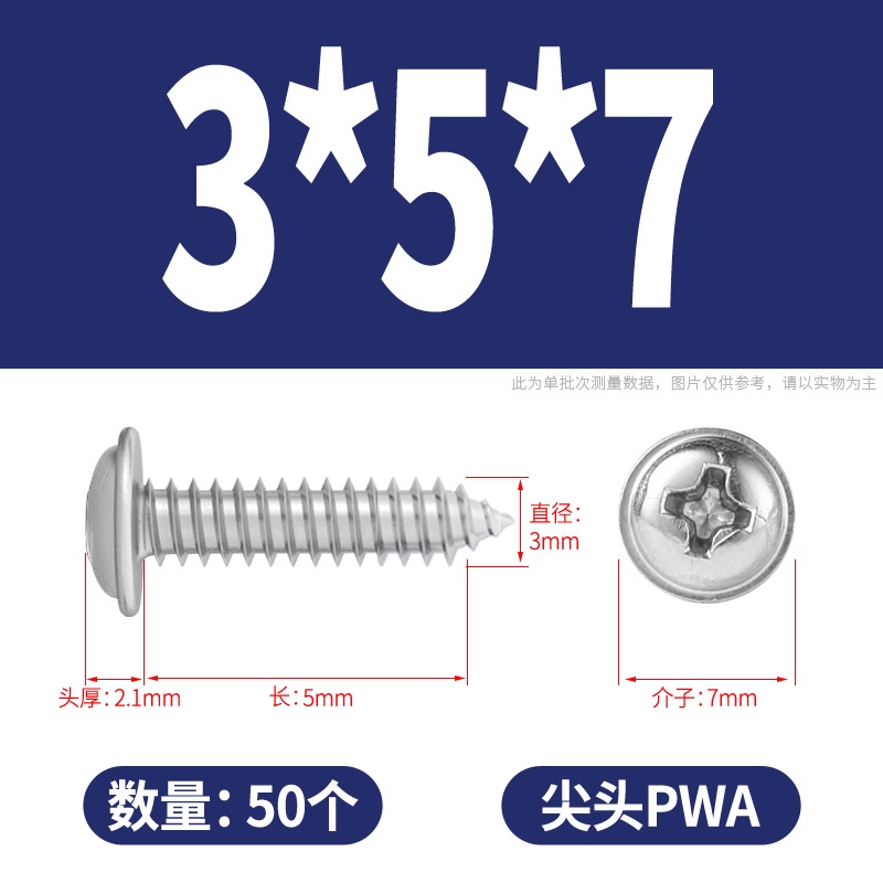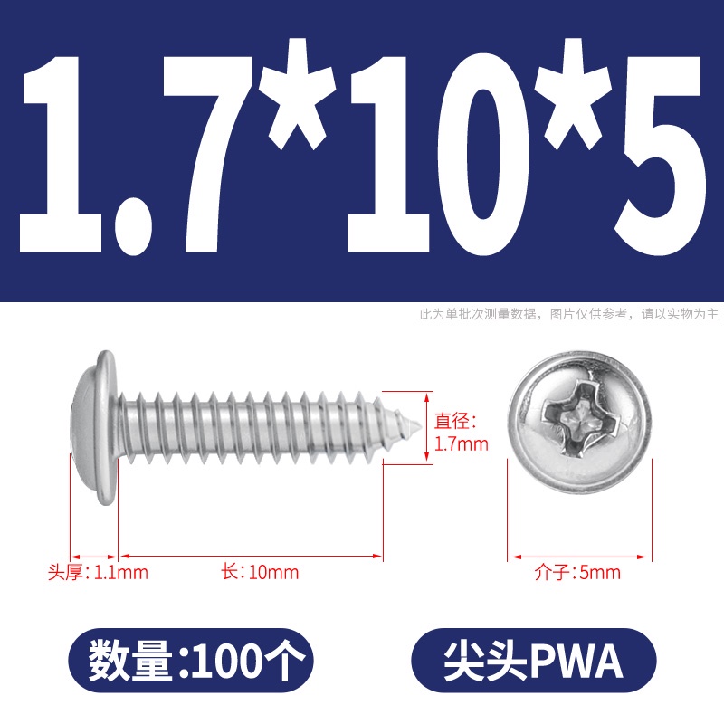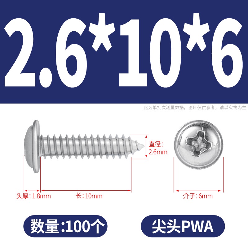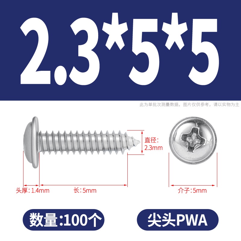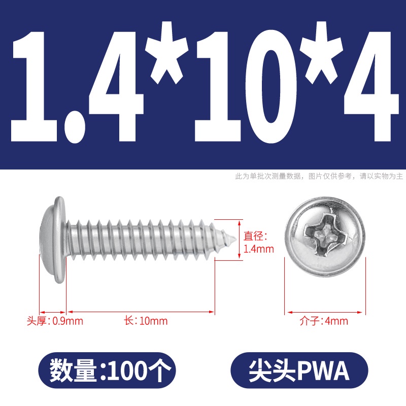 M1-m3 SUS304 Stainless Steel Phillips Round Head with Pad Self-Tapping Screw