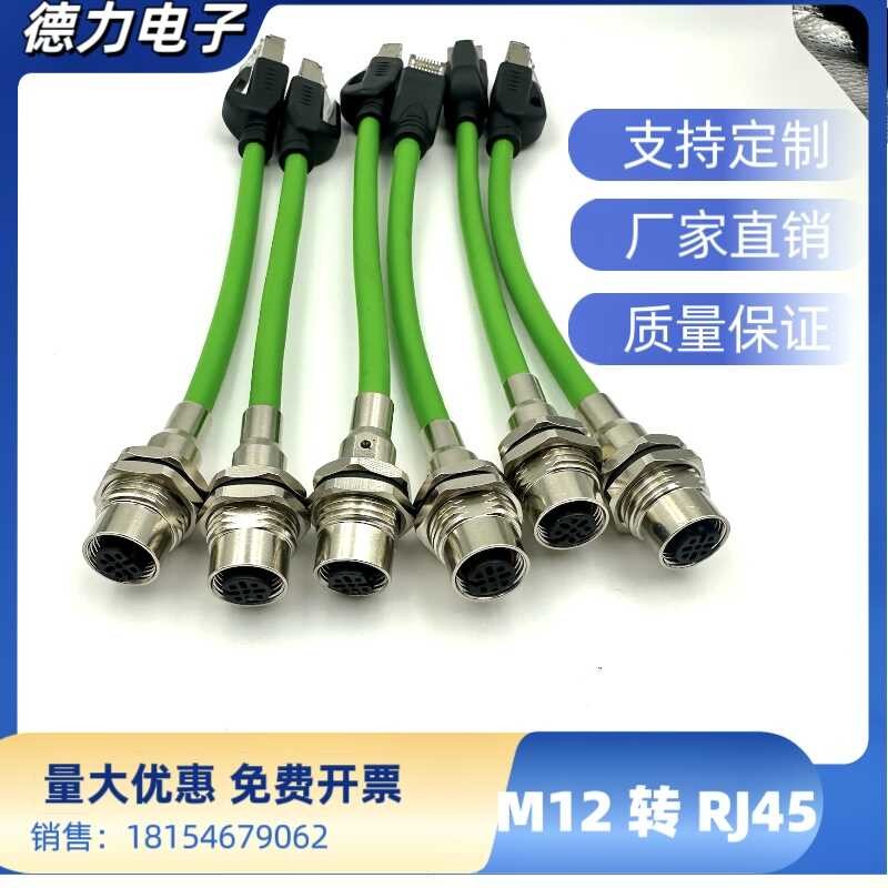 M12 D Code 4PIN to RJ45 Encoder Ethernet 4-Pin 8-Core Cable Plug Double Shielded Twisted Pair