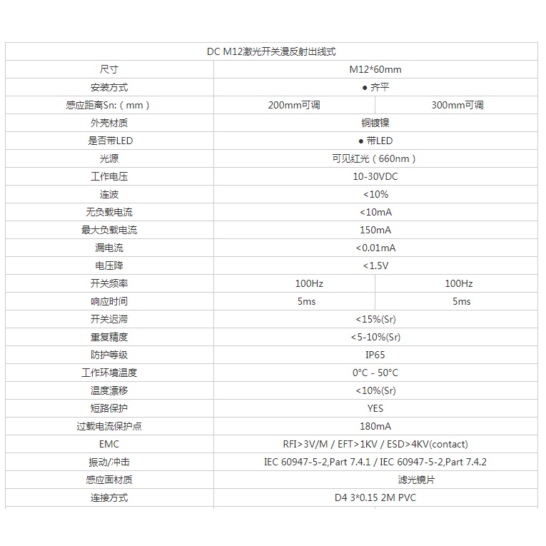 M12 Laser Diffuse Reflection Photoelectric Switch Visible Light Sensor Infrared Sensing Switch 15cm