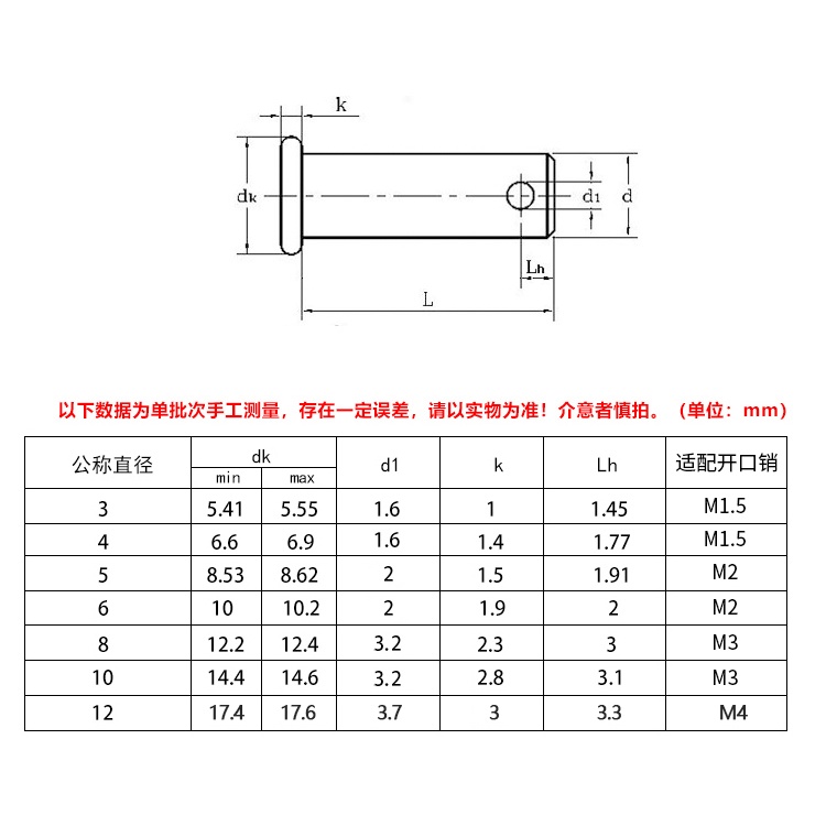 M12/M14/M16/M20 304 Stainless Steel Cylindrical Pin Positioning Nail M3M4M5M6M8M10M12