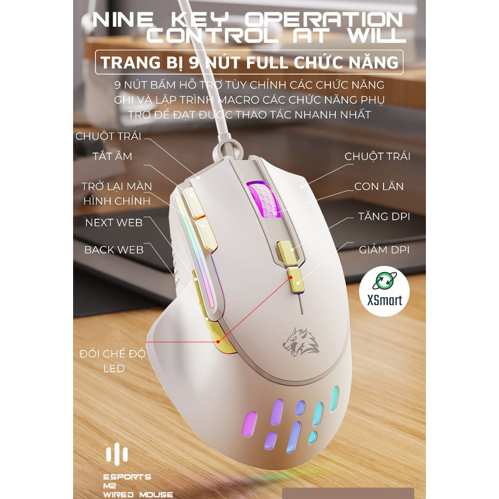 M2 Led RGB Gaming Computer Mechanical Mouse Cool Design Professional Macro Installation for All Gaming Modes