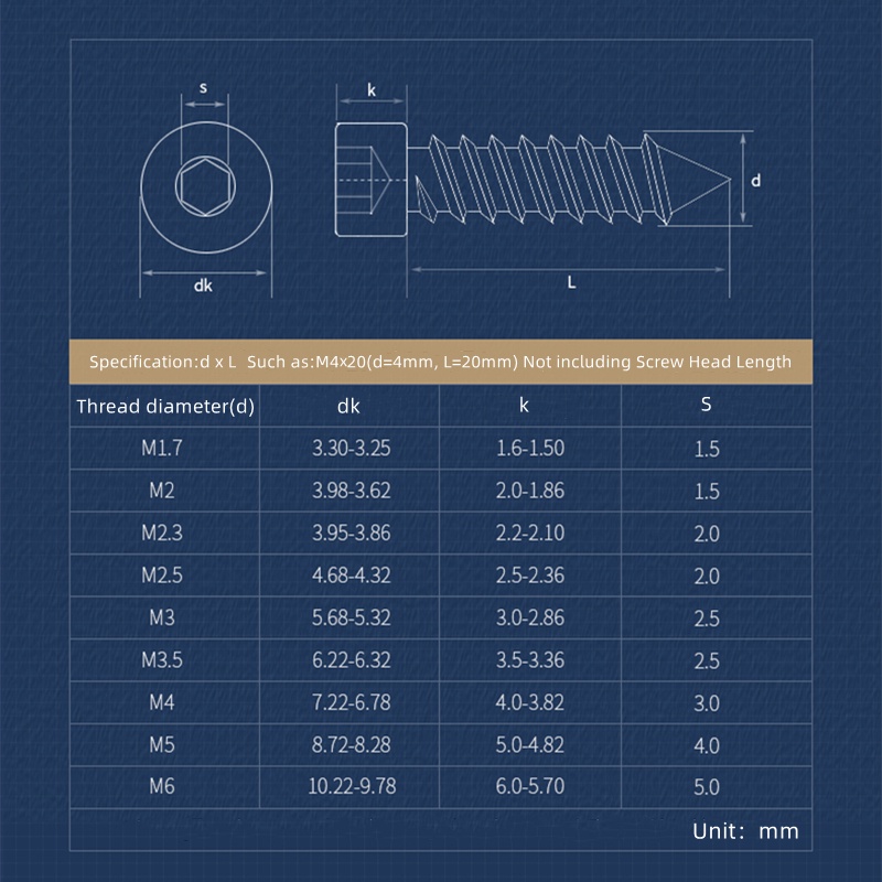 M2 M2.5 M3 M3.5 M4 M5 M6 304 Stainless Steel Cup Head Hexagon Hex Socket Self-tapping Screws