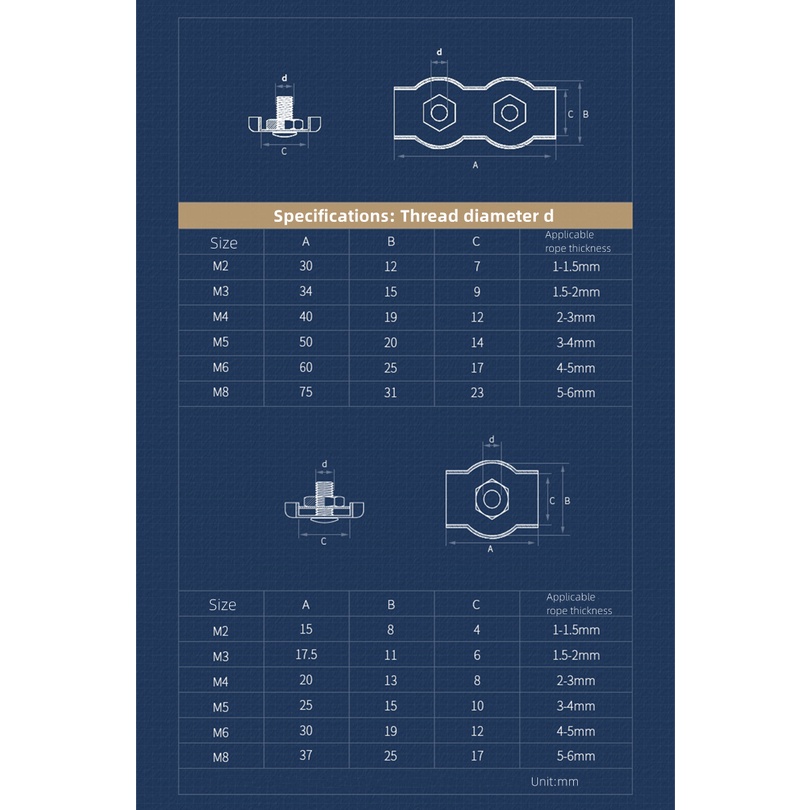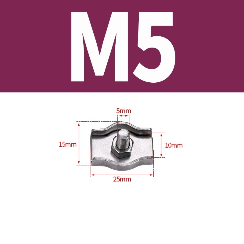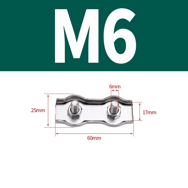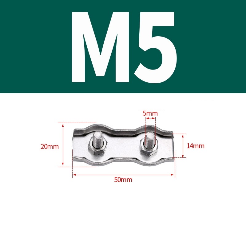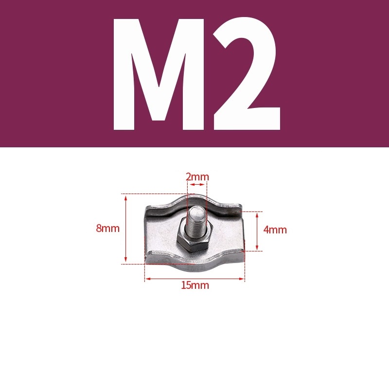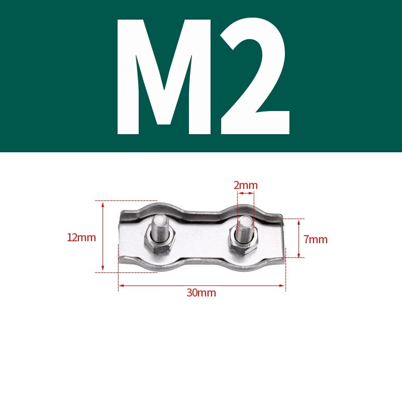M2 M3 M4 M5 M6 M8 M10 304 Stainless Steel Wire Rope Single or Double Clip Chuck Lock Cable Clamp Fastener Caliper