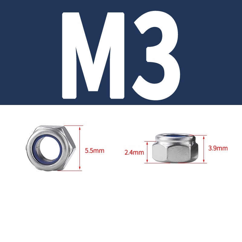 M2 - M30 304 Stainless Steel Hex Nylon Insert Lock Nut Self-locking LocknutStandard Hexagon Nuts Screw Fastener