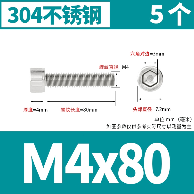 M4 Hex Socket Cap Head Screws 304 Stainless Steel SHINY SURFACE Allen Bolt DIN912 Skru Allen Key Screw