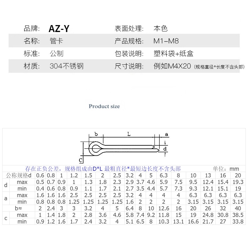 M5/M6/M8/M10 304 stainless steel split pin locating pin elastic snap pin pin shaft pin