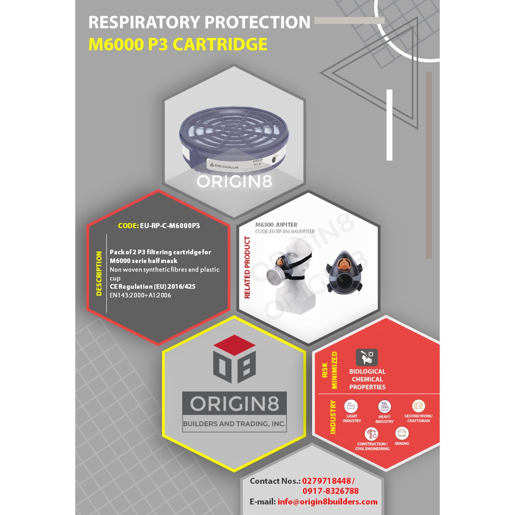 M6000 P3 DELTA PLUS EUROPEAN BRAND RESPIRATORY PROTECTION CARTRIDGE FOR MASK