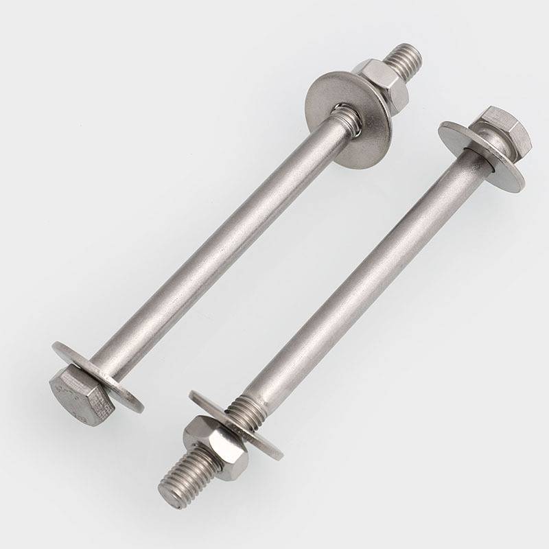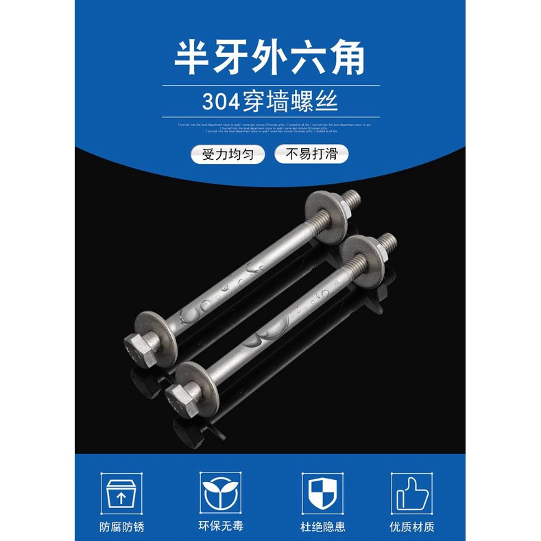 M6M8M10 304 stainless steel outer hexagonal wall screw with long butt-through screw half-thread pair of lock-long bolts 1 set = 1 bolt + 2 nuts + 2 enlarged flat washers 304