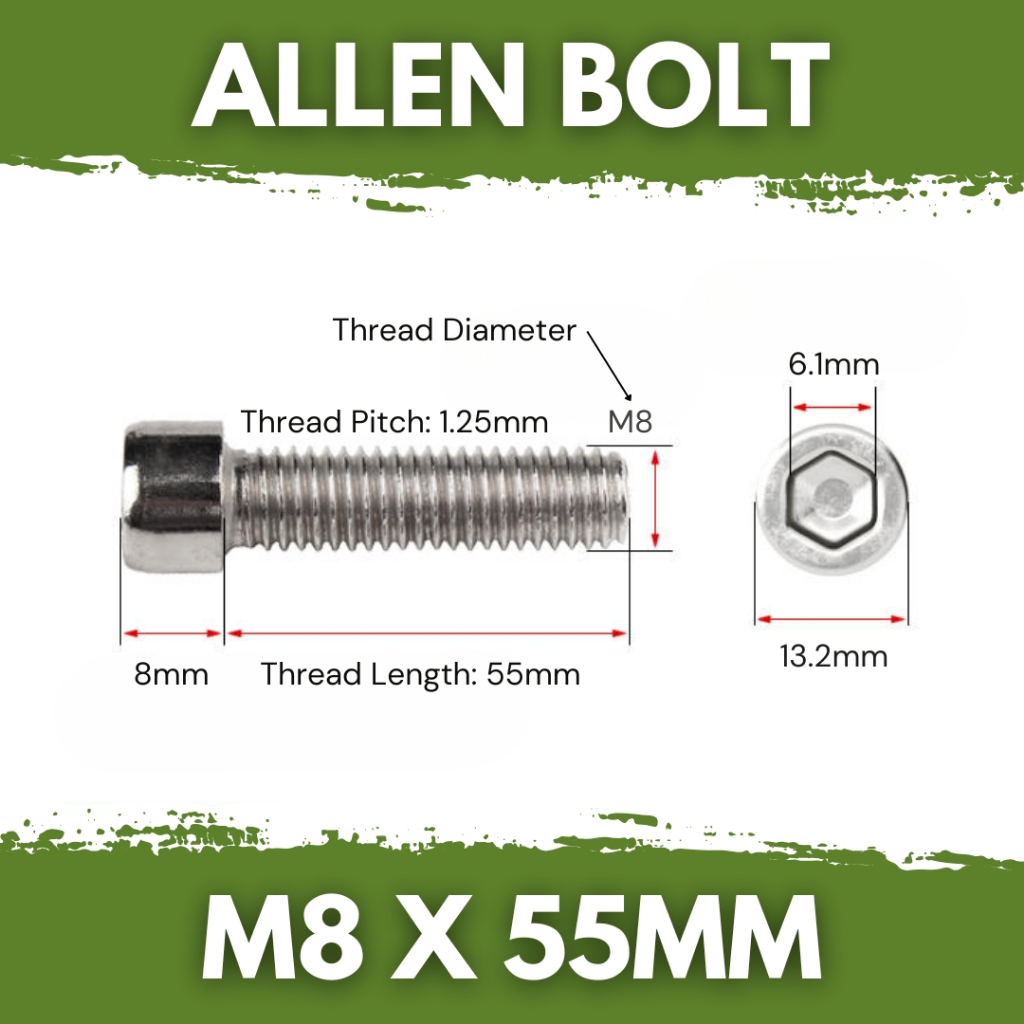 M8 Allen Bolt Stainless Steel 8mm Thread Socket Head Cap Screw Bolts / Nuts JuanHardware